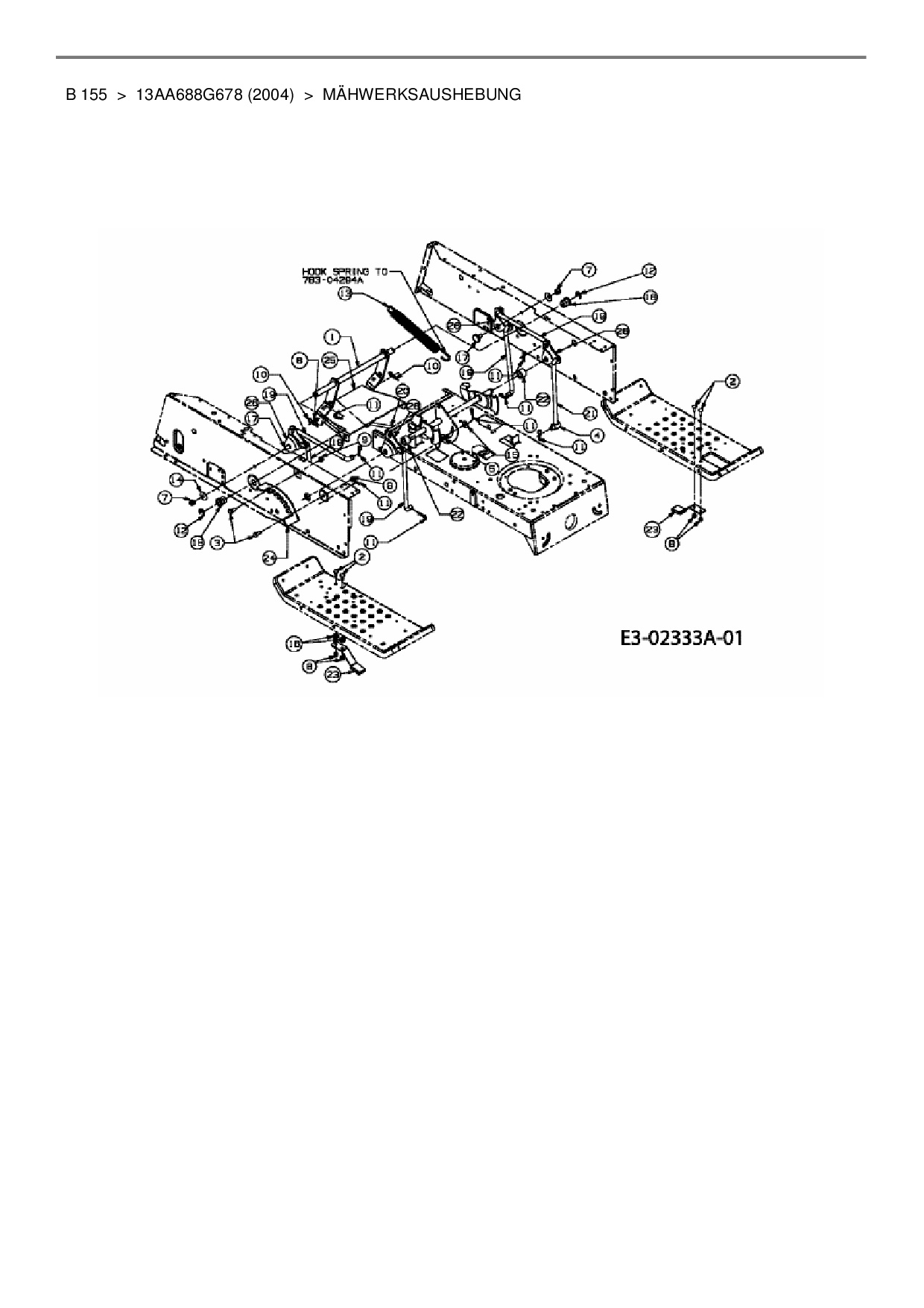 Ersatzteile für Rasentraktor MTD B 155 aus der Zeichnung Mähwerksaushebung: