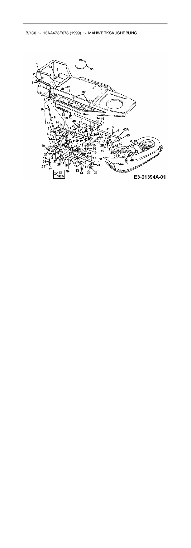 Download Ersatzteil-Zeichnung MTD B/130 Zeichnung Mähwerksaushebung (PDF-Format)