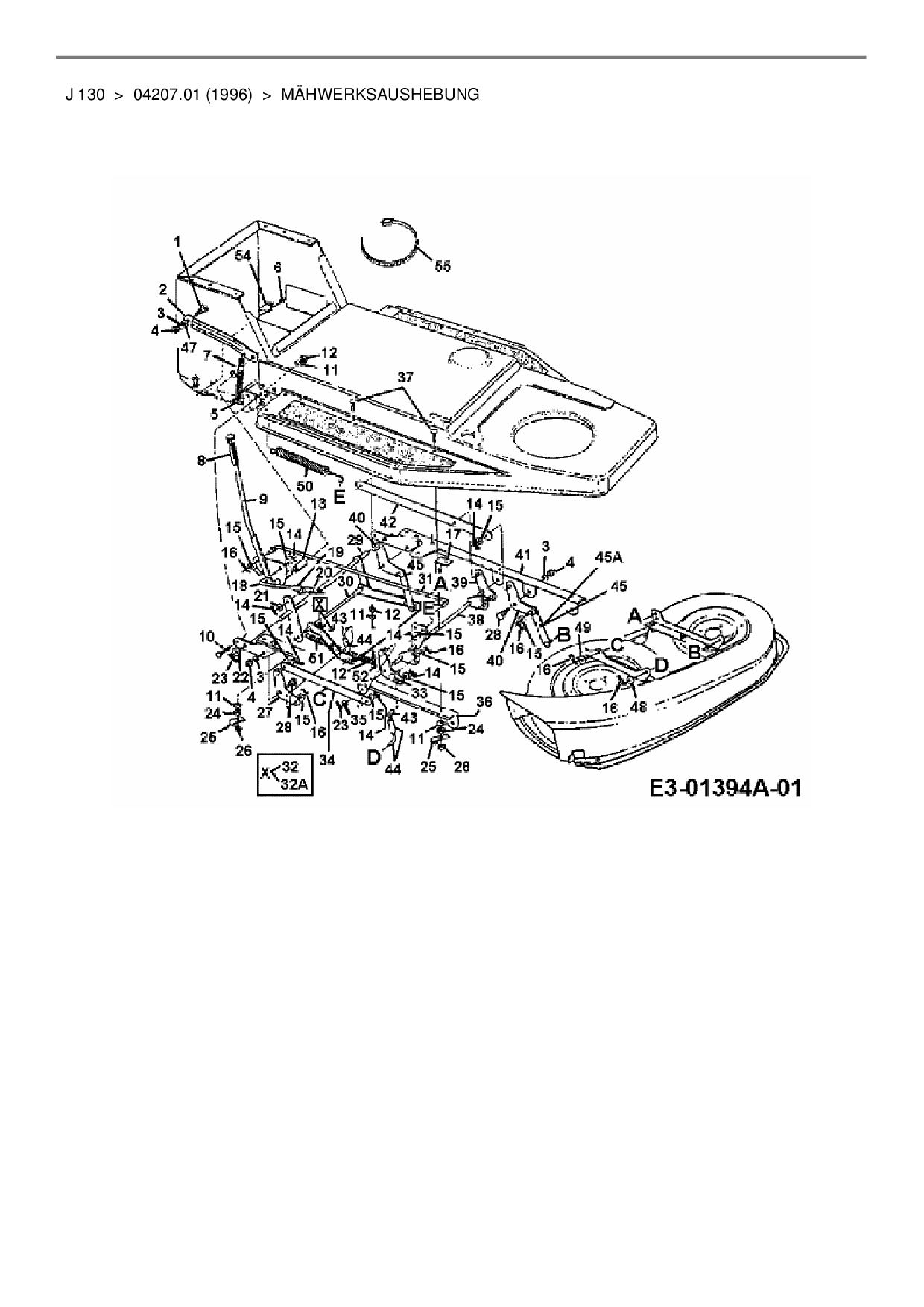 Download Ersatzteil-Zeichnung MTD J 130 Zeichnung Mähwerksaushebung (PDF-Format)