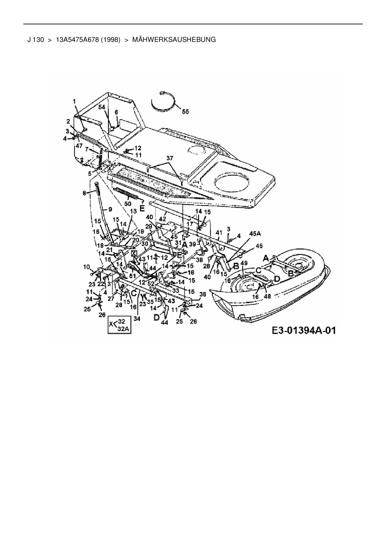 Ersatzteile für Rasentraktor MTD J 130 aus der Zeichnung Mähwerksaushebung: