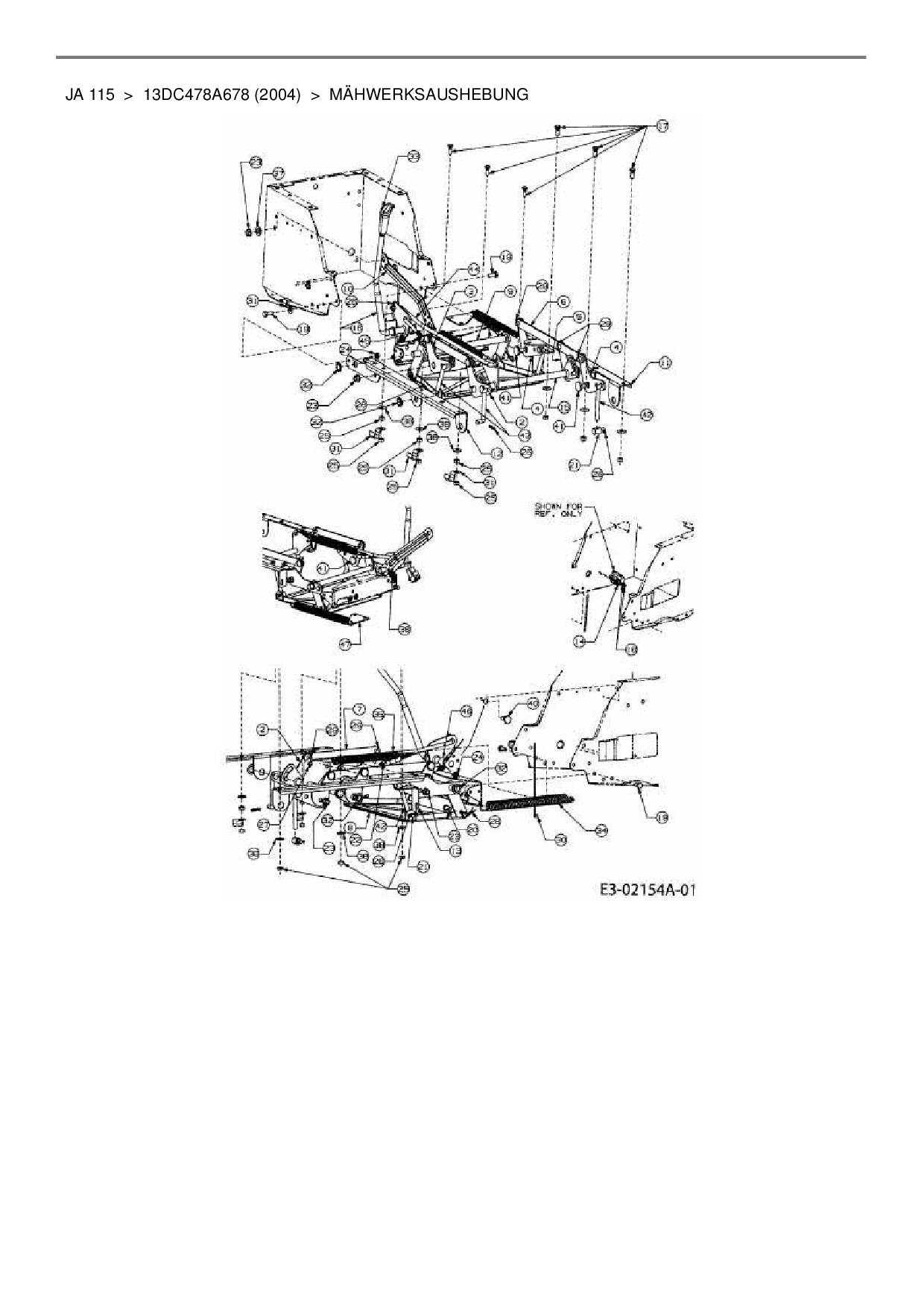 Zeichnung für MTD Rasentraktor JA 115 mit der Geräte-Artikelnr. 13DC478A678 ab Baujahr 2004: