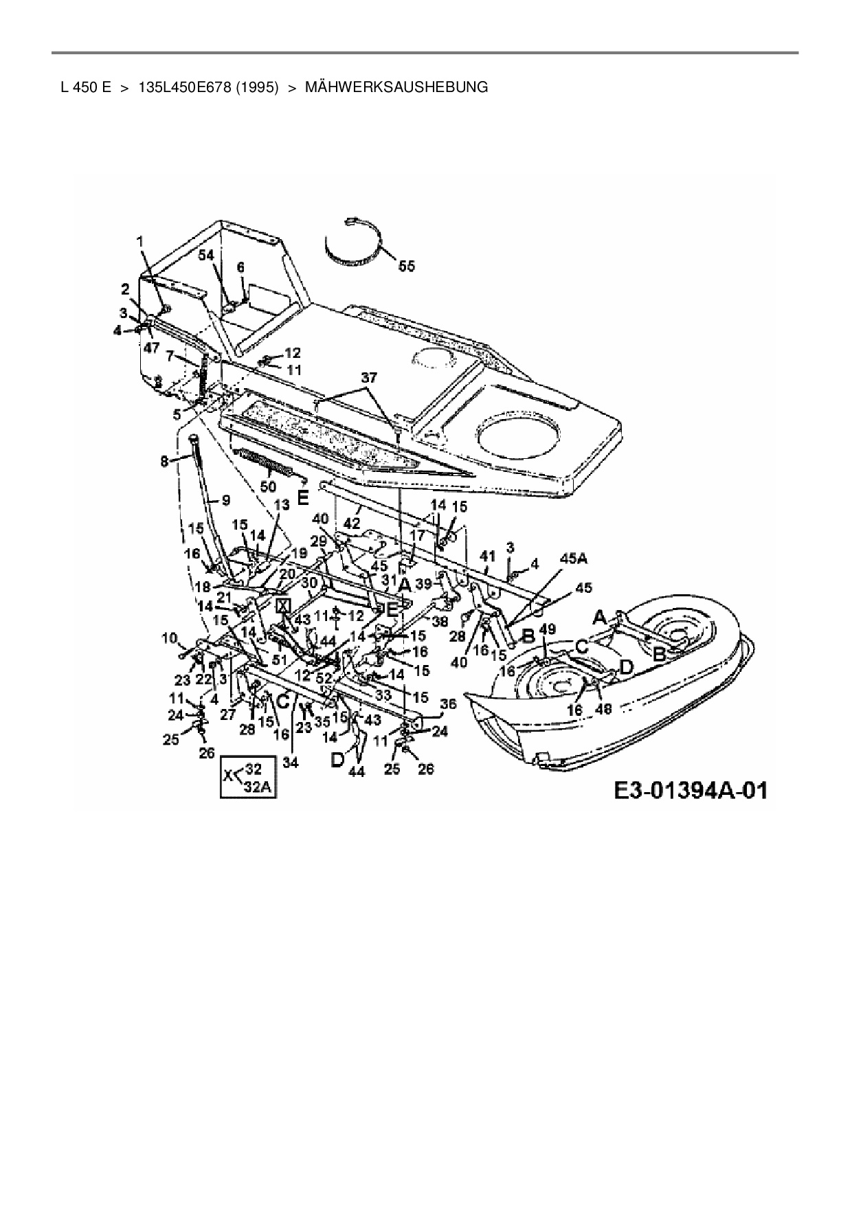 Ersatzteile für Rasentraktor MTD L 450 E aus der Zeichnung Mähwerksaushebung: