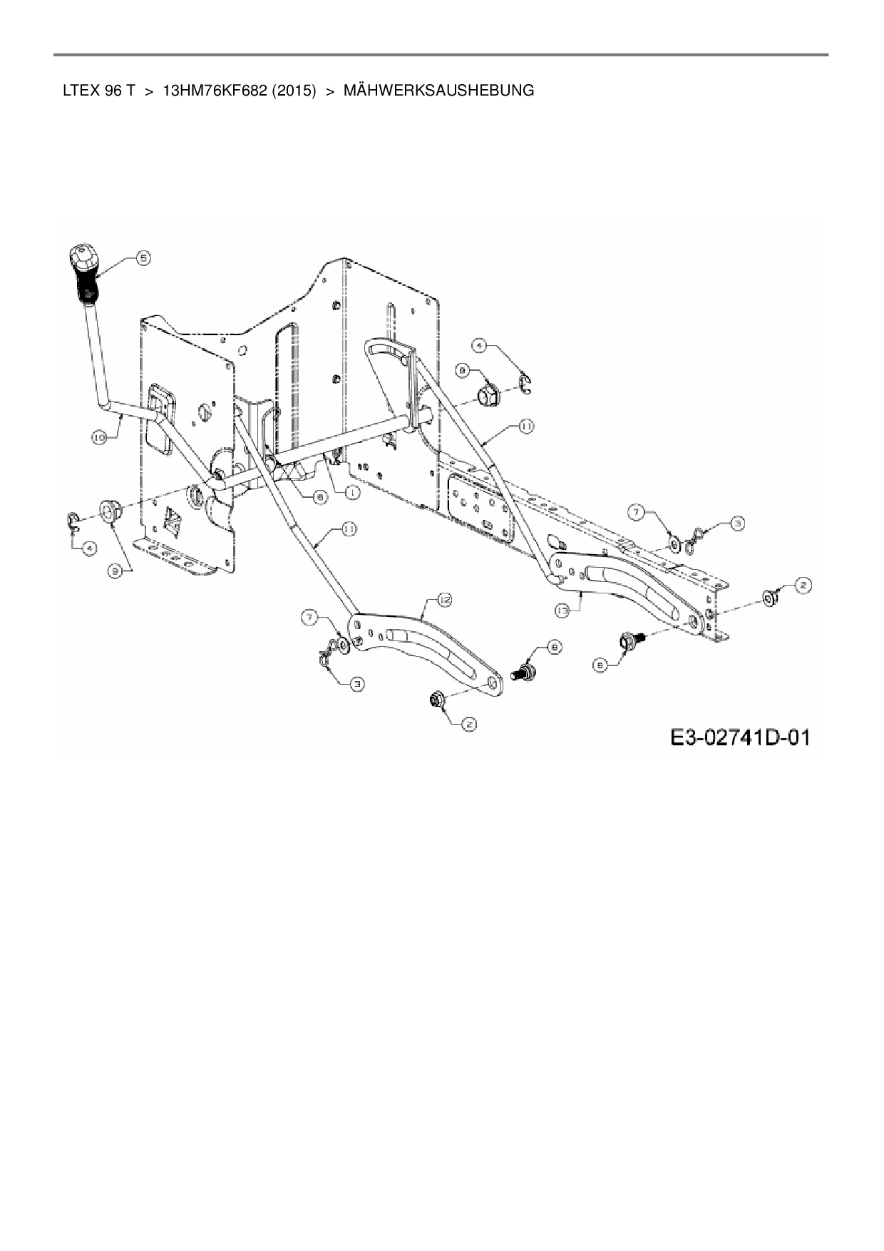 Ersatzteile für Rasentraktor MTD LTEX 96 T aus der Zeichnung Mähwerksaushebung: