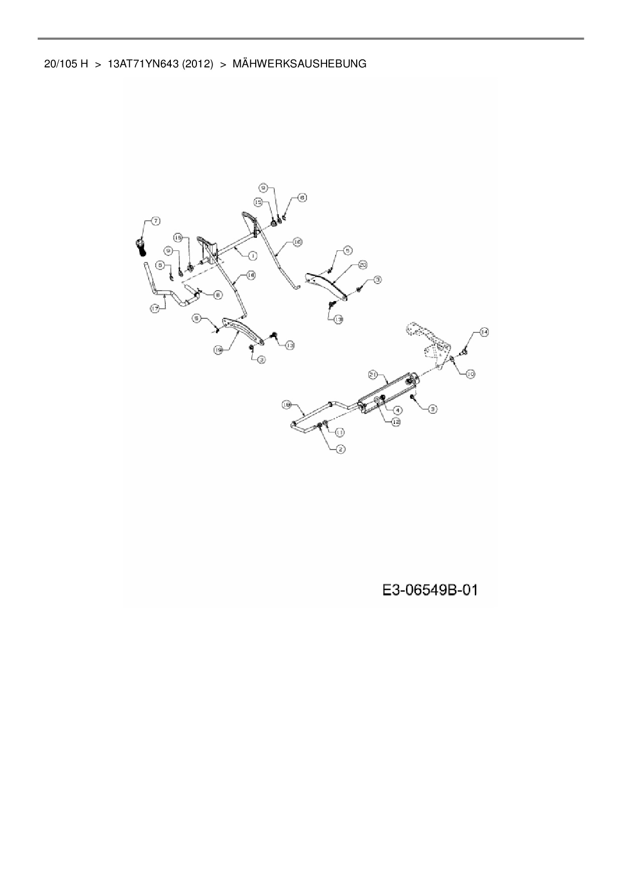 Ersatzteile für Rasentraktor Yard-Man 20/105 H aus der Zeichnung Mähwerksaushebung: