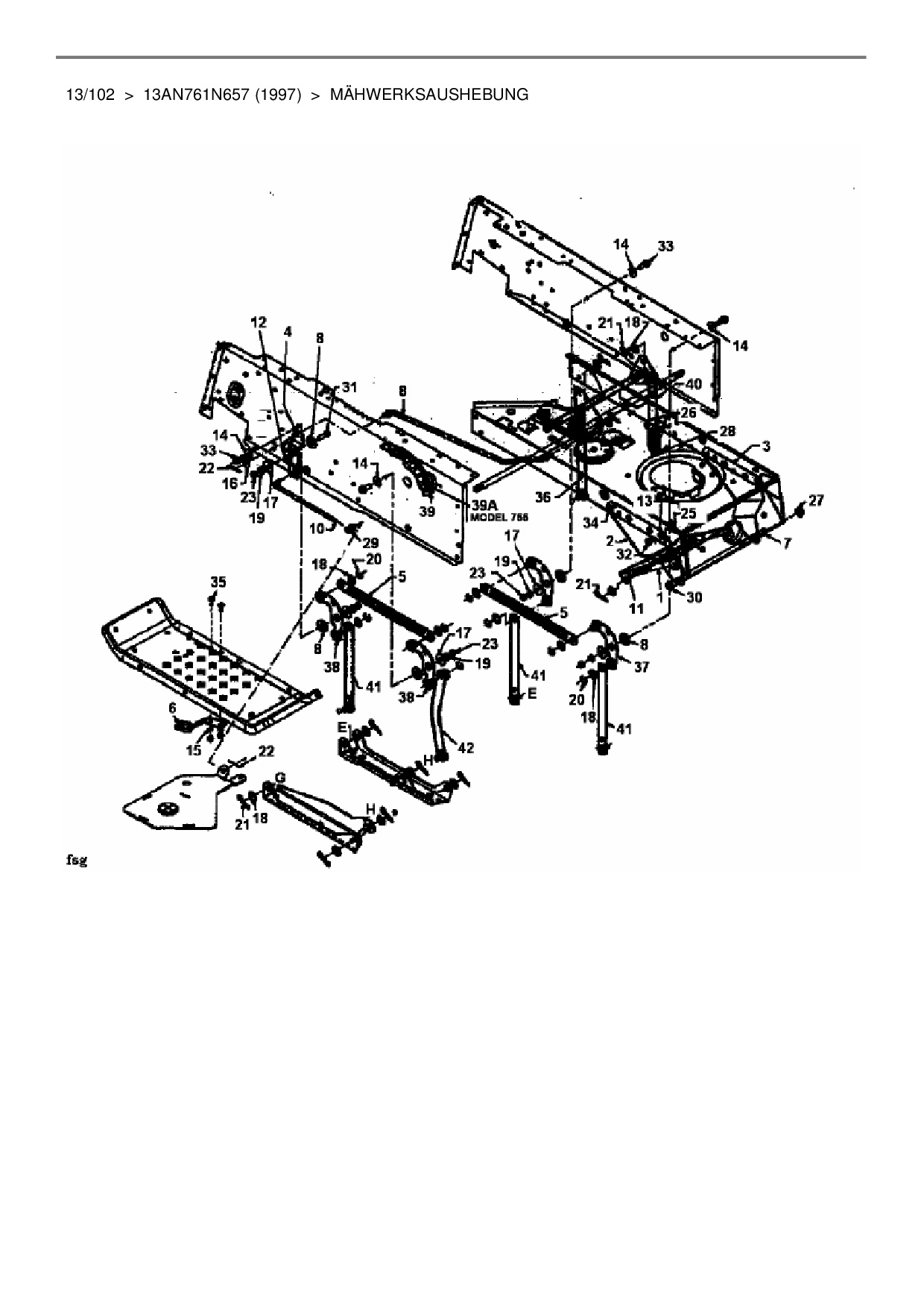 Ersatzteile für Rasentraktor Mastercut 13/102 aus der Zeichnung Mähwerksaushebung: