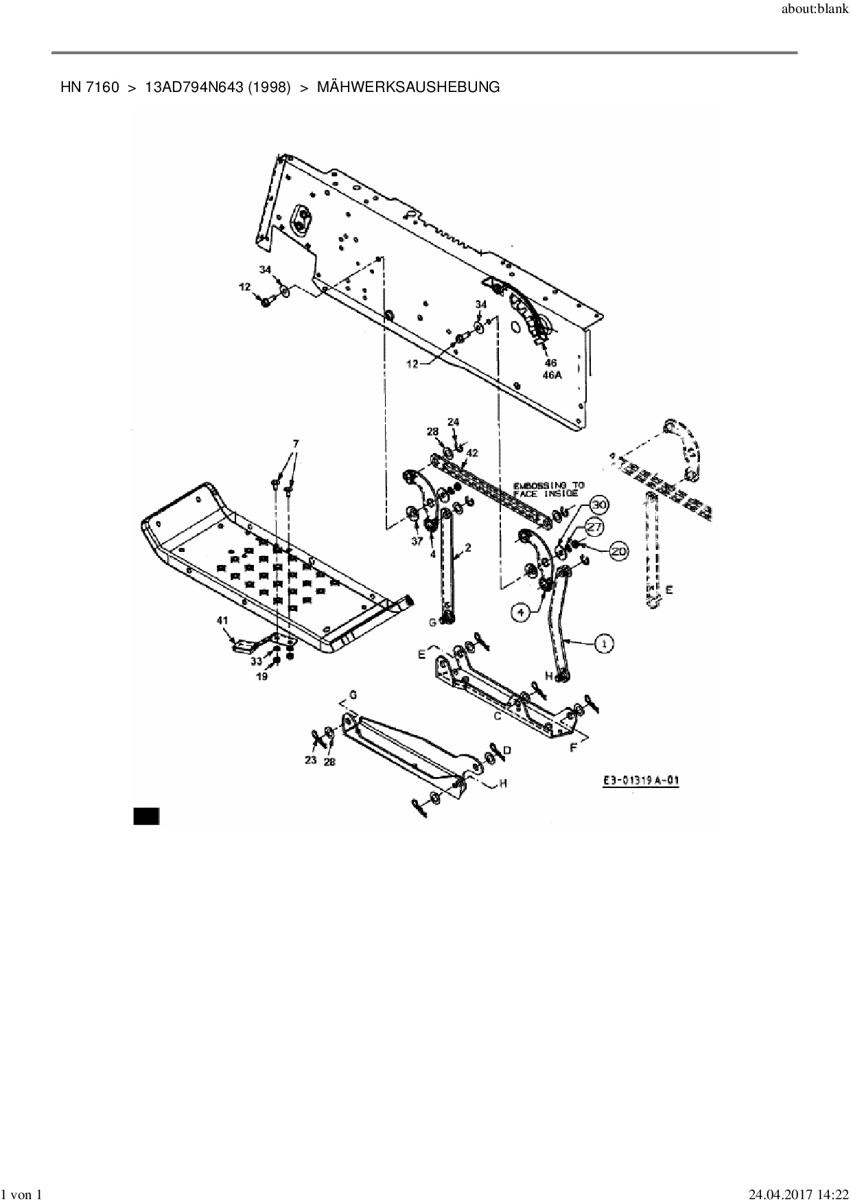 Ersatzteile für Rasentraktor Yard-Man HN 7160 aus der Zeichnung Mähwerksaushebung: