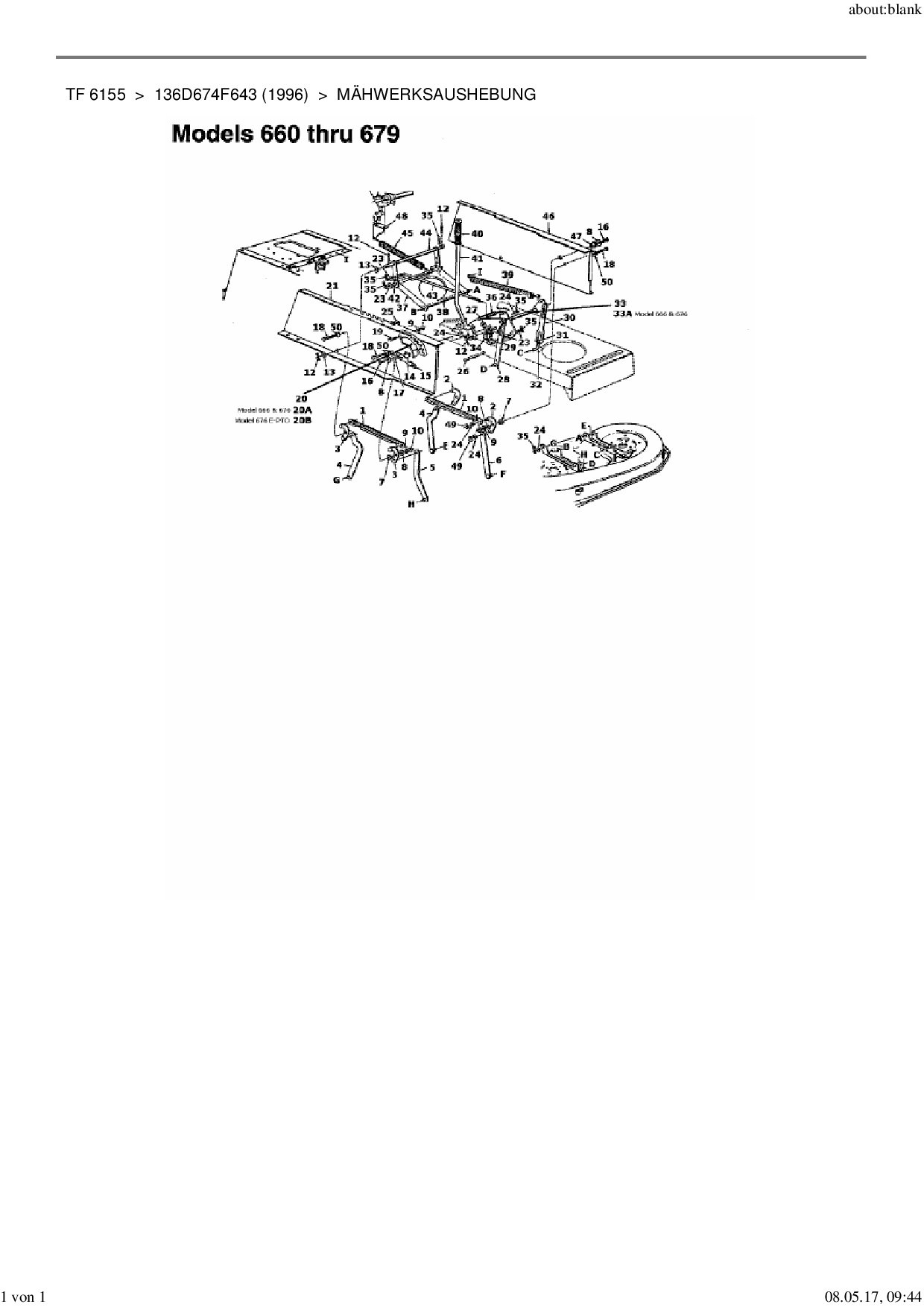 Ersatzteile für Rasentraktor Yard-Man TF 6155 aus der Zeichnung Mähwerksaushebung: