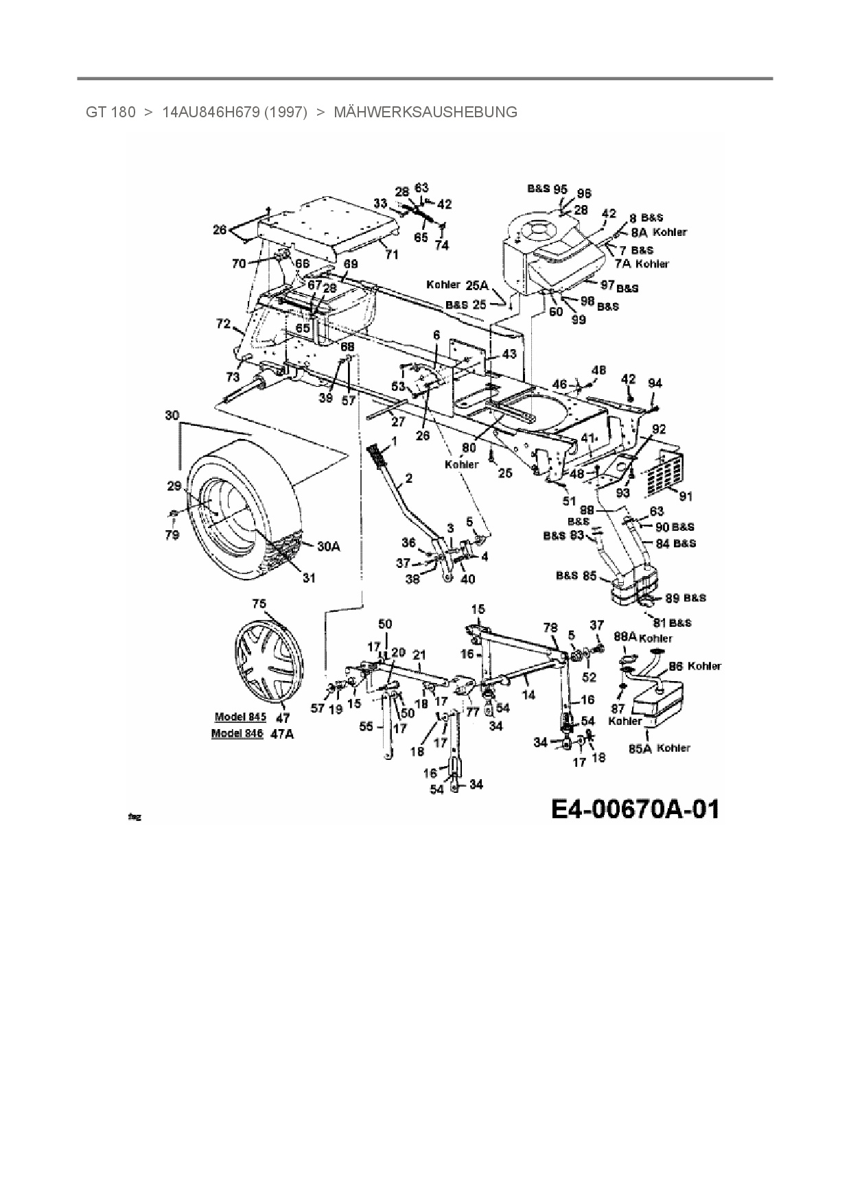 Ersatzteile für Gartentraktor White GT 180 aus der Zeichnung Mähwerksaushebung: