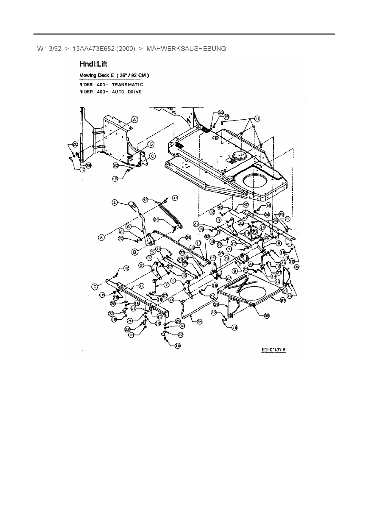 Ersatzteile für Rasentraktor White W 13/92 aus der Zeichnung Mähwerksaushebung:
