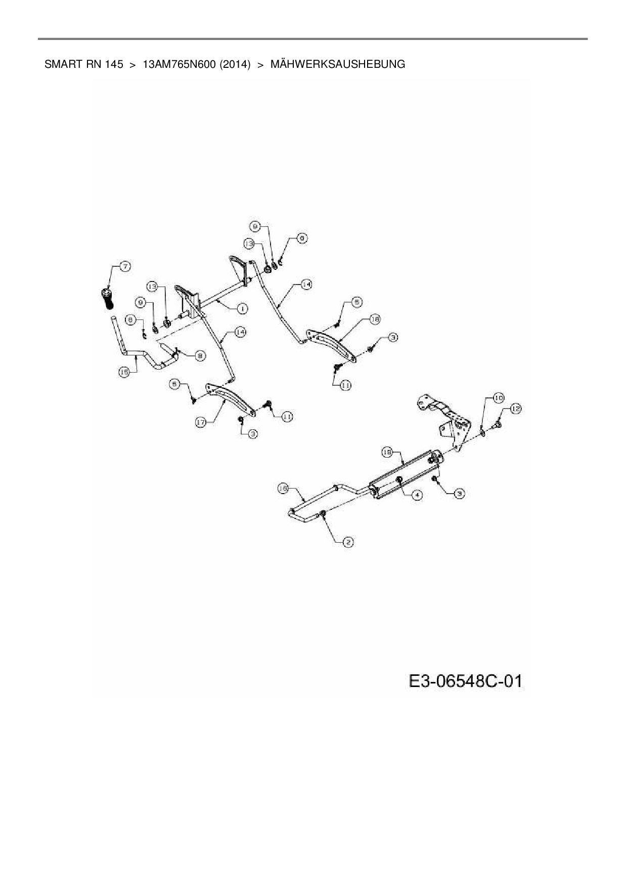 Ersatzteile für Rasentraktor MTD Smart RN 145 aus der Zeichnung Mähwerksaushebung: