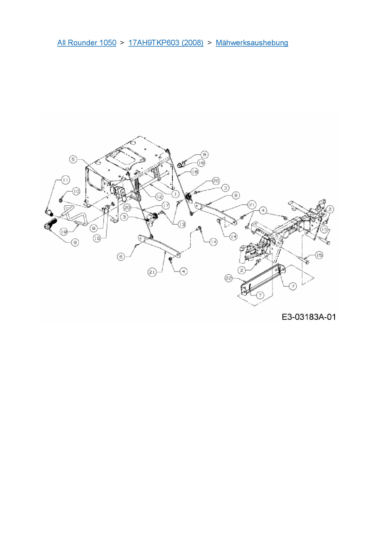 Download Ersatzteil-Zeichnung Cub Cadet All Rounder 1050 Zeichnung Mähwerksaushebung (PDF-Format)