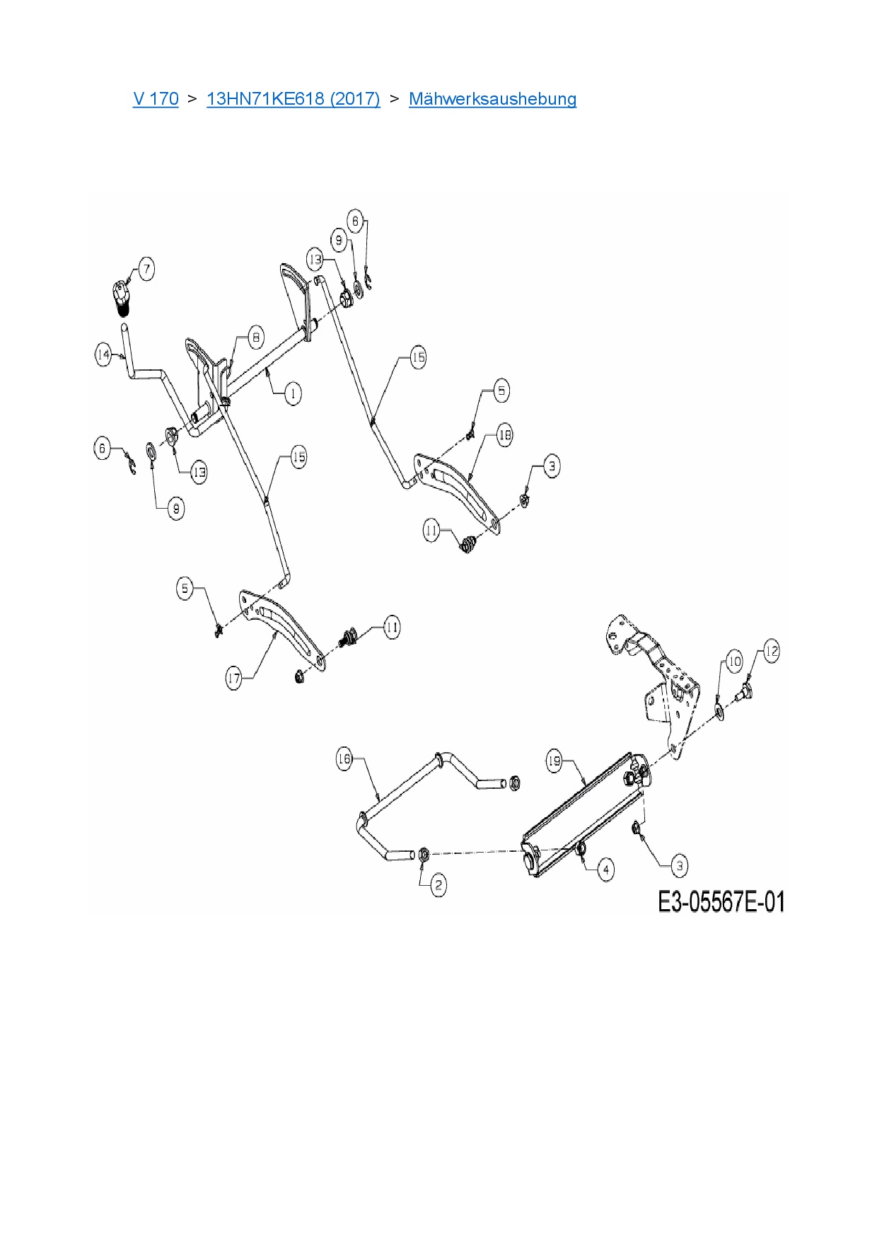 Ersatzteile für Rasentraktor Greenbase V 170 aus der Zeichnung Mähwerksaushebung: