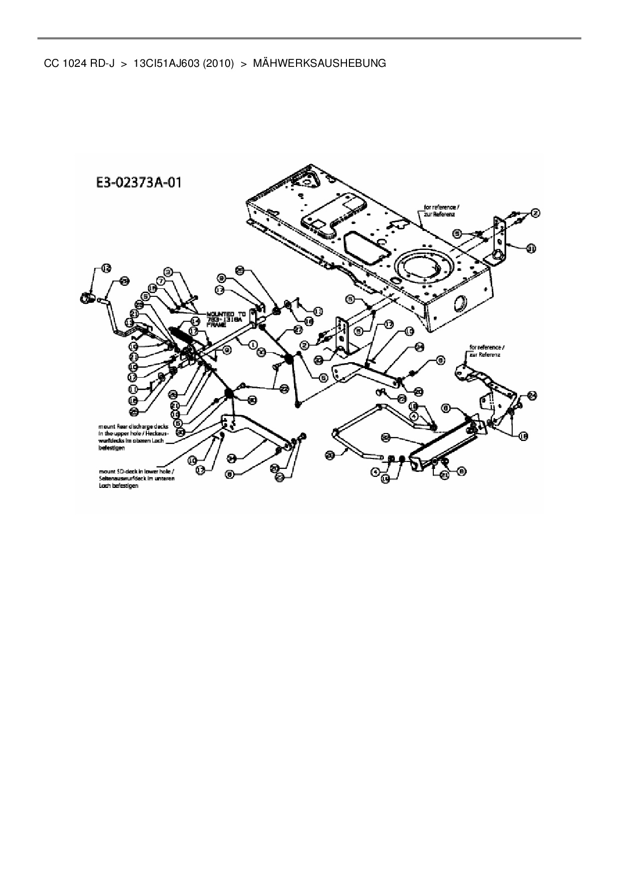 Ersatzteile für Rasentraktor Cub Cadet CC 1024 RD-J aus der Zeichnung Mähwerksaushebung: