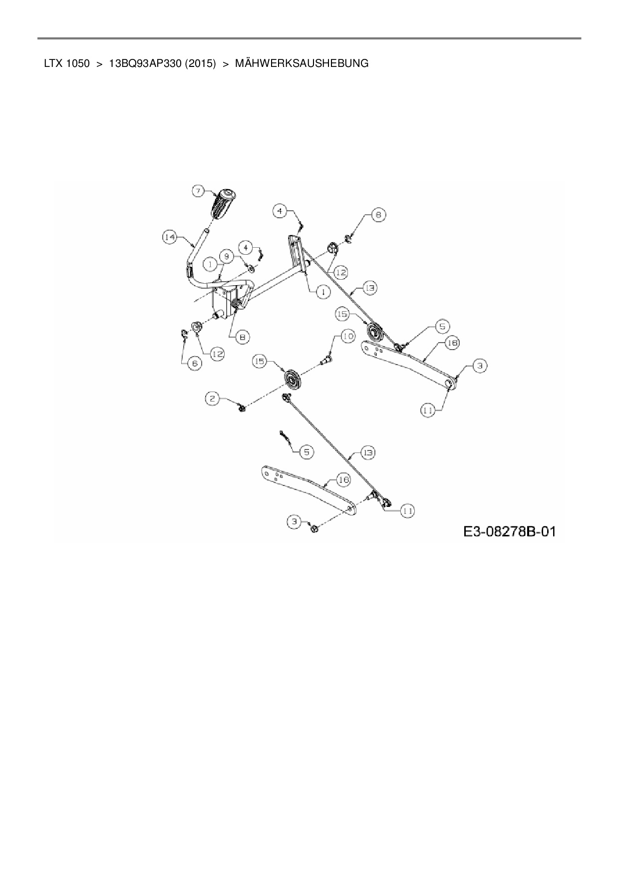 Download Ersatzteil-Zeichnung Cub Cadet LTX 1050 Zeichnung Mähwerksaushebung (PDF-Format)