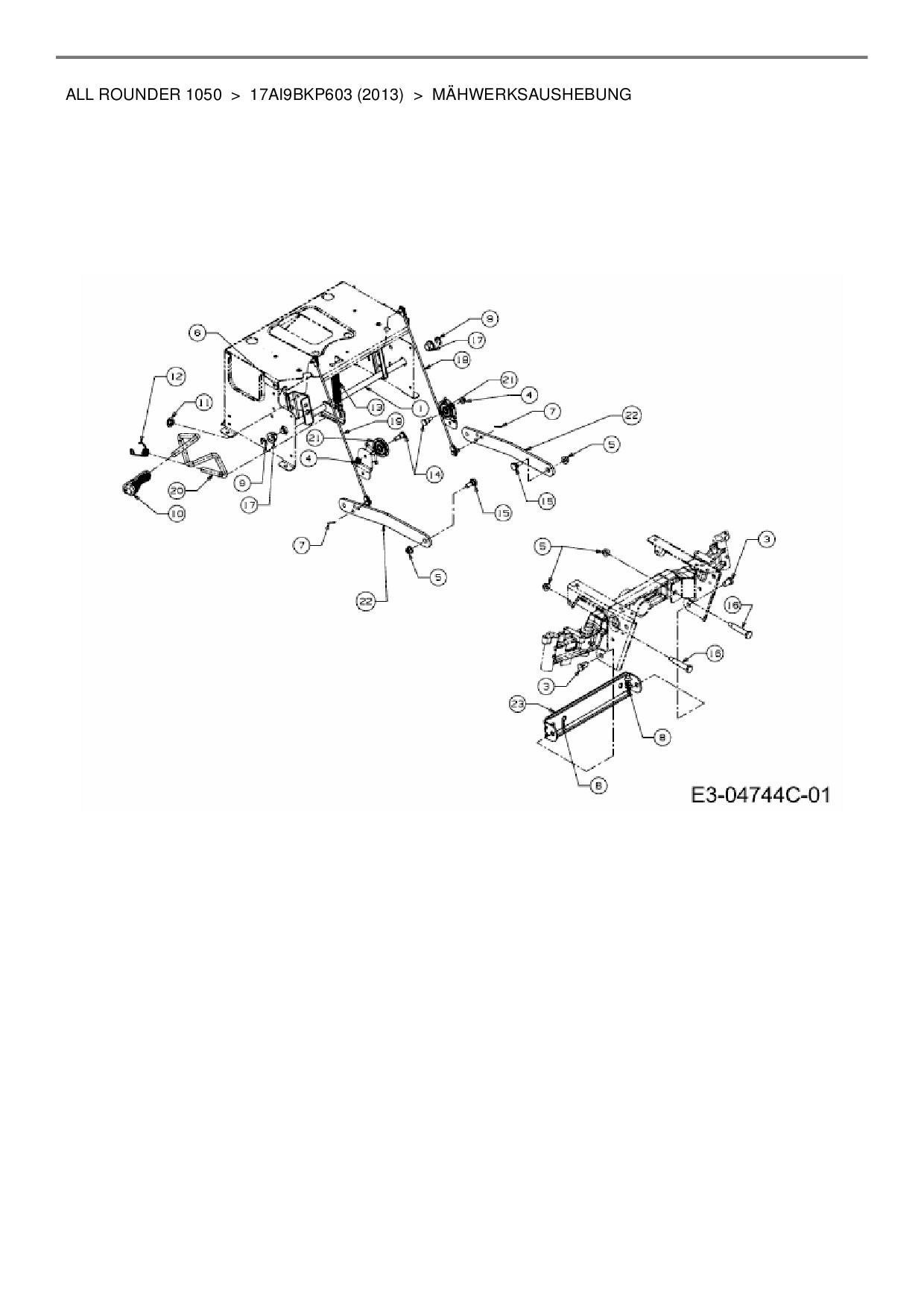 Download Ersatzteil-Zeichnung Cub Cadet All Rounder 1050 Zeichnung Mähwerksaushebung (PDF-Format)