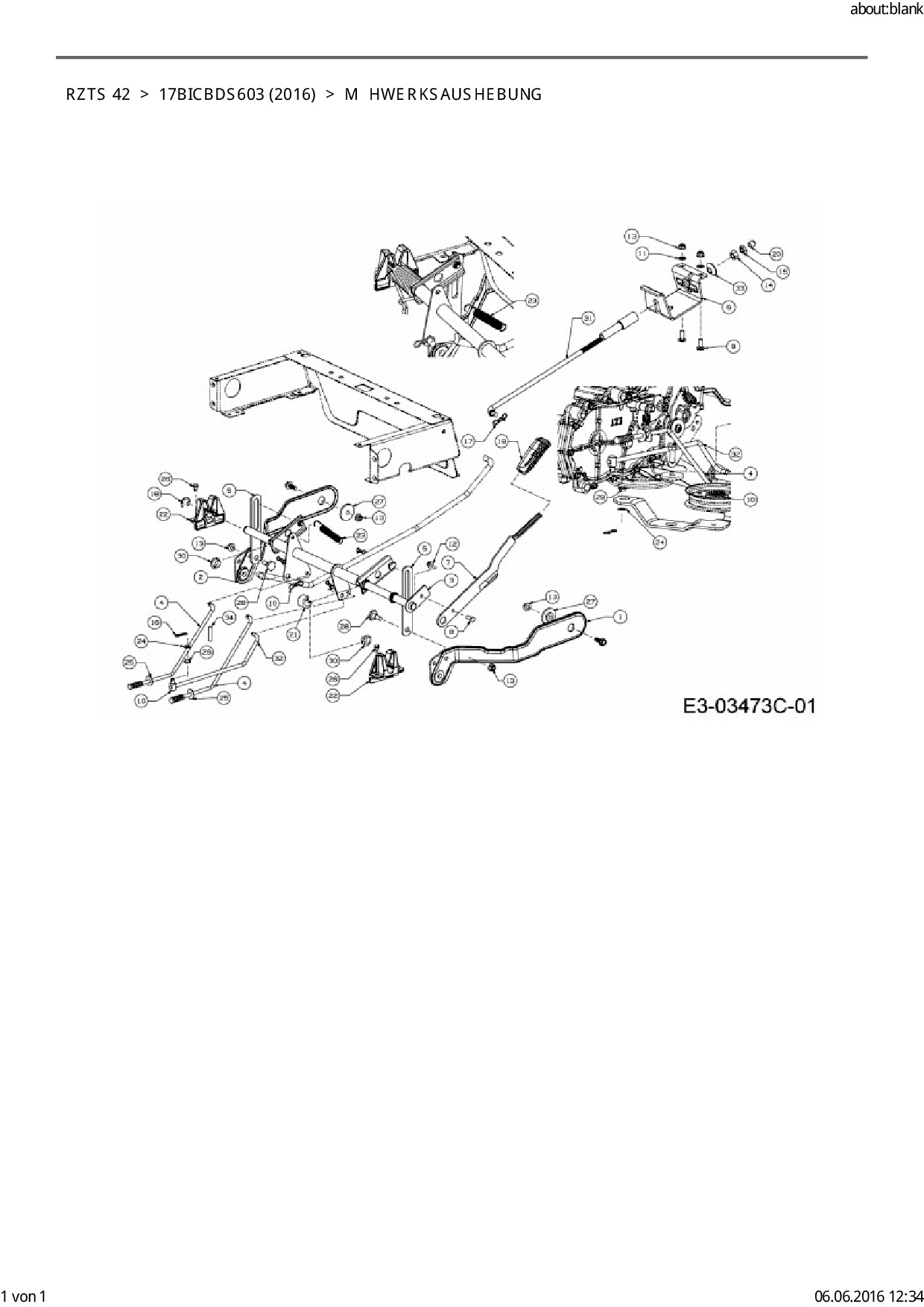 Ersatzteile für Zero Turn Cub Cadet RZTS 42 aus der Zeichnung Mähwerksaushebung: