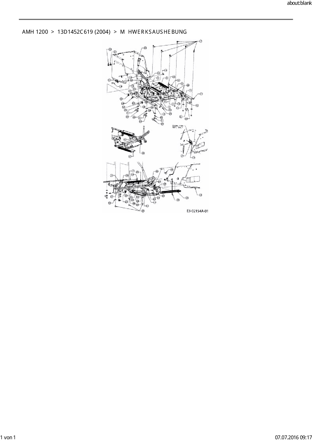 Ersatzteile für Rasentraktor FLEURELLE AMH 1200 aus der Zeichnung Mähwerksaushebung: