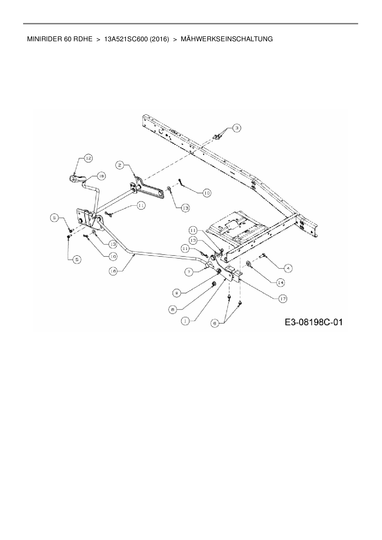 Ersatzteile für Rasentraktor MTD Minirider 60 RDHE aus der Zeichnung Mähwerkseinschaltung 2: