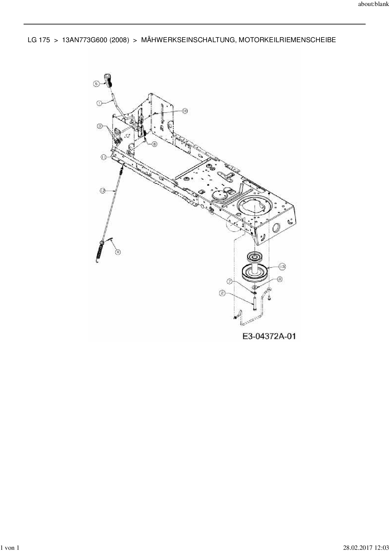 Download Ersatzteil-Zeichnung MTD LG 175 Zeichnung Mähwerkseinschaltung, Motorkeilriemenscheibe 1 (PDF-Format)