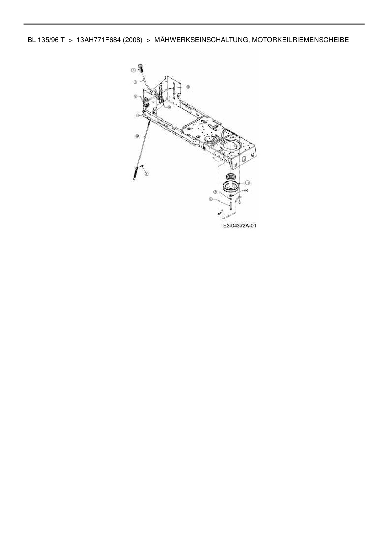 Ersatzteile für Rasentraktor Bolens BL 135/96 T aus der Zeichnung Mähwerkseinschaltung, Motorkeilriemenscheibe 1: