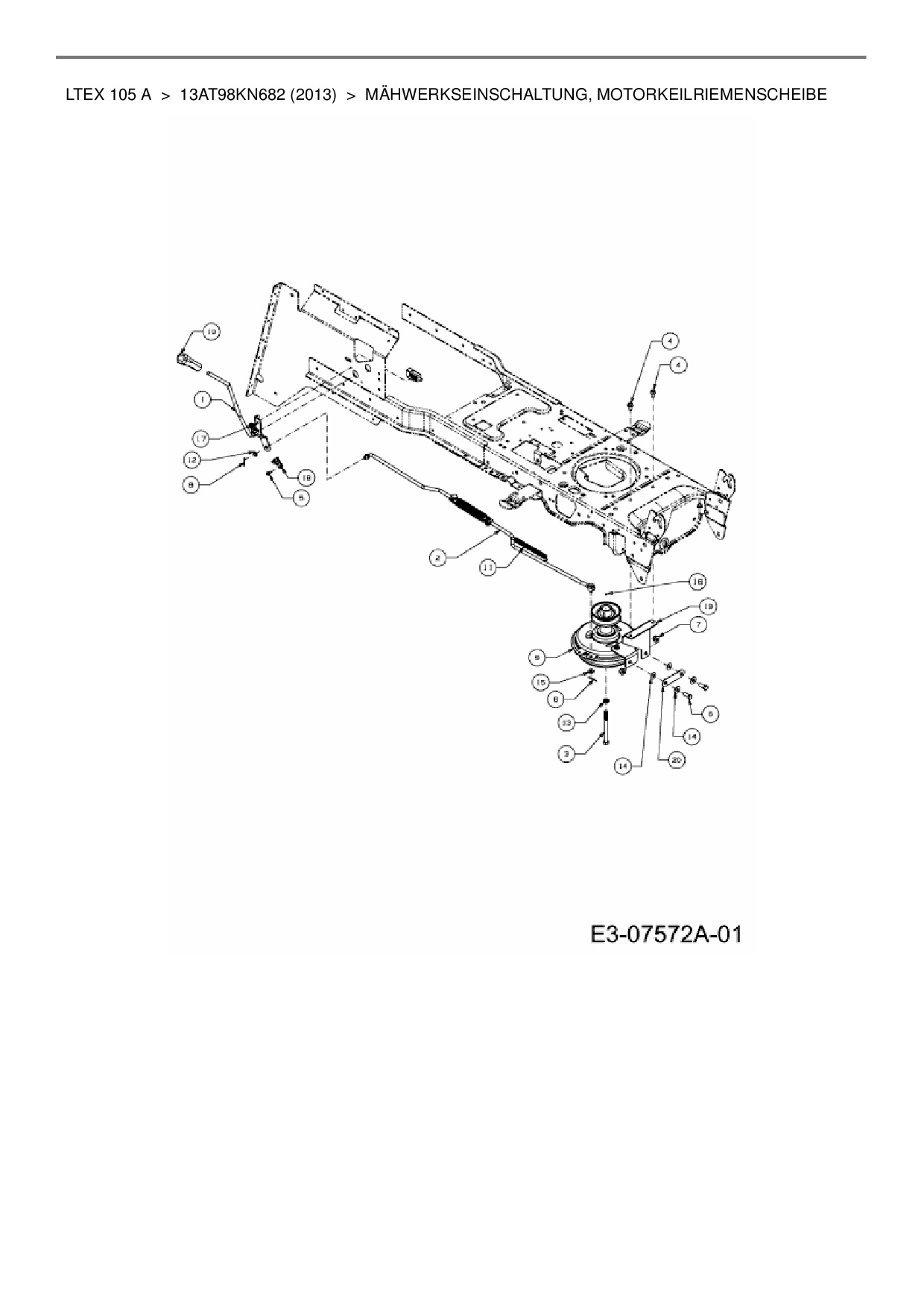 Download Ersatzteil-Zeichnung MTD LTEX 105 A Zeichnung Mähwerkseinschaltung, Motorkeilriemenscheibe (PDF-Format)