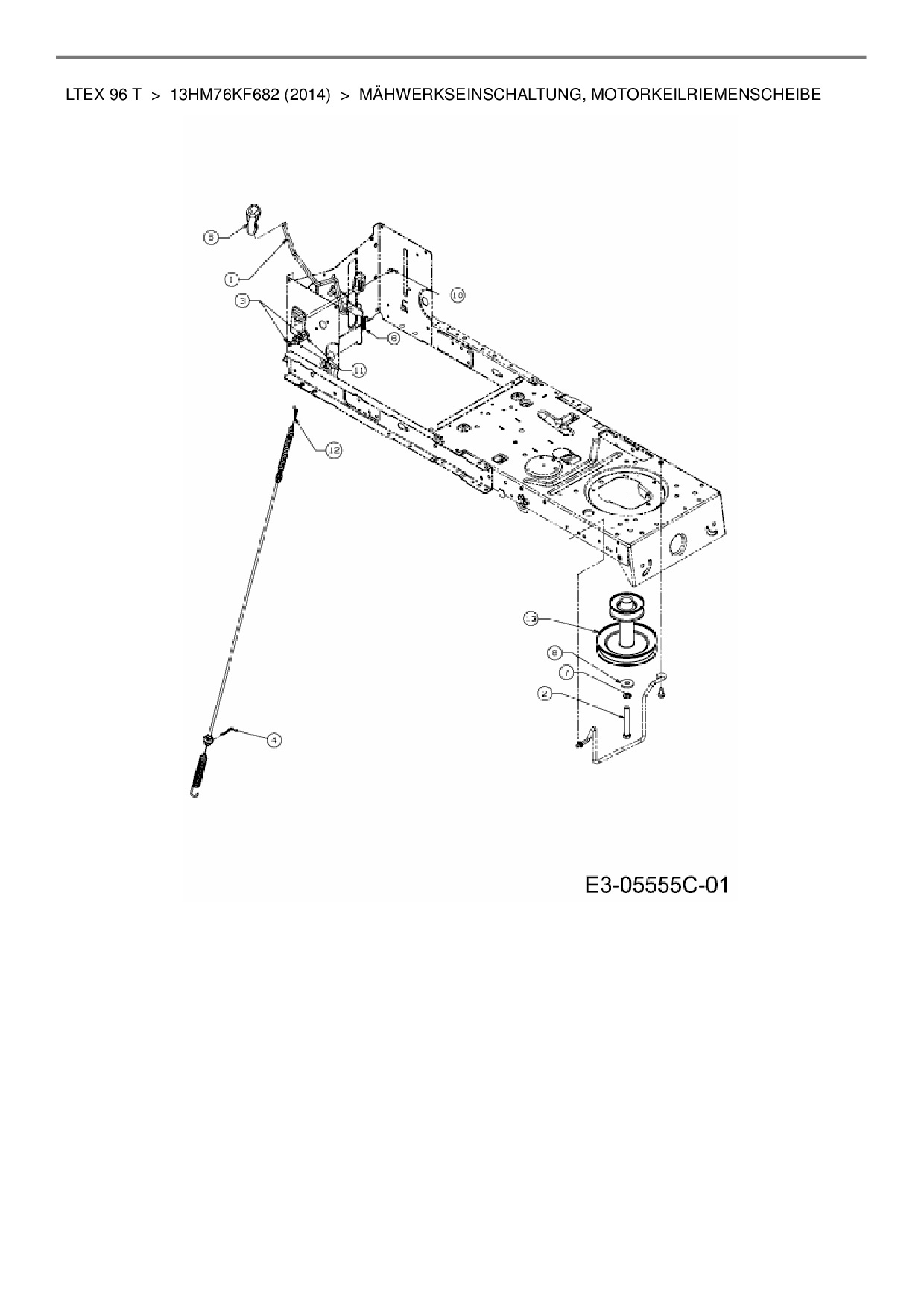 Ersatzteile für Rasentraktor MTD LTEX 96 T aus der Zeichnung Mähwerkseinschaltung, Motorkeilriemenscheibe: