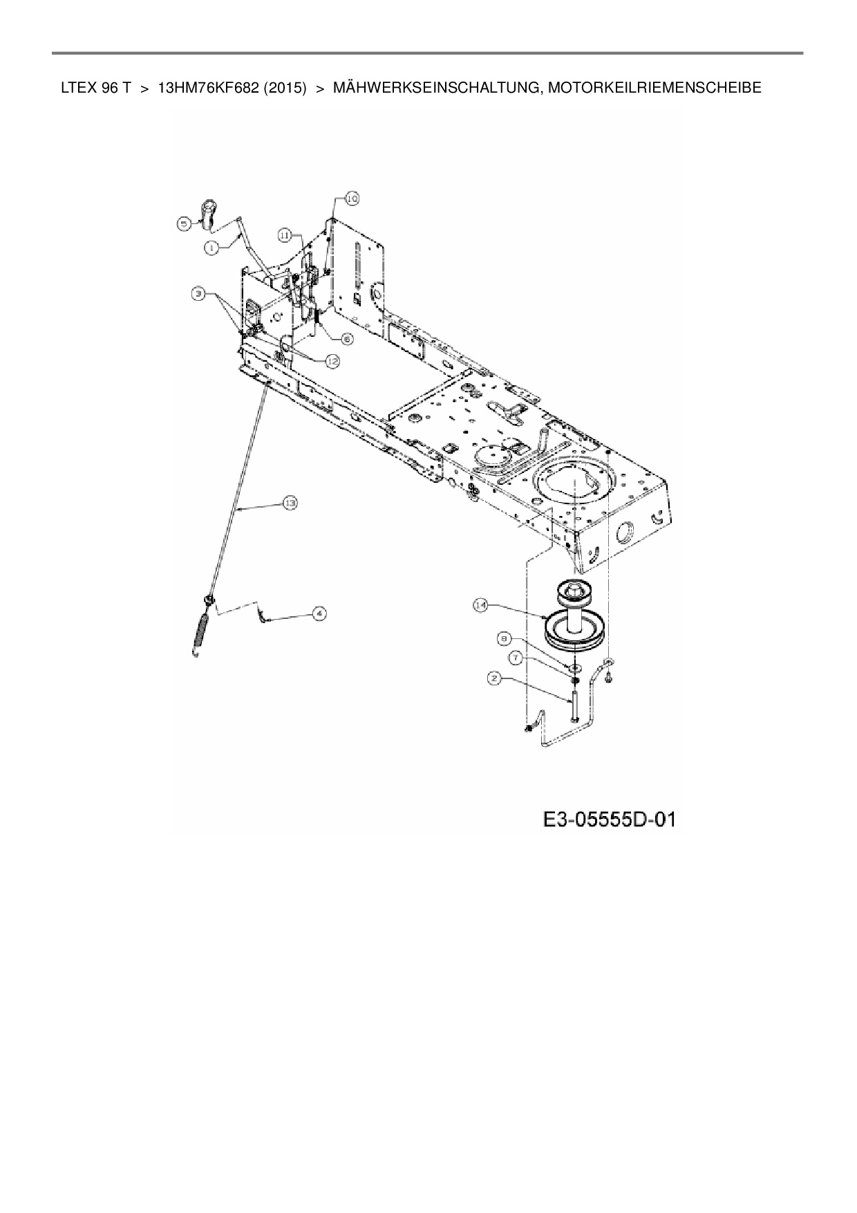 Download Ersatzteil-Zeichnung MTD LTEX 96 T Zeichnung Mähwerkseinschaltung, Motorkeilriemenscheibe (JPG-Format)
