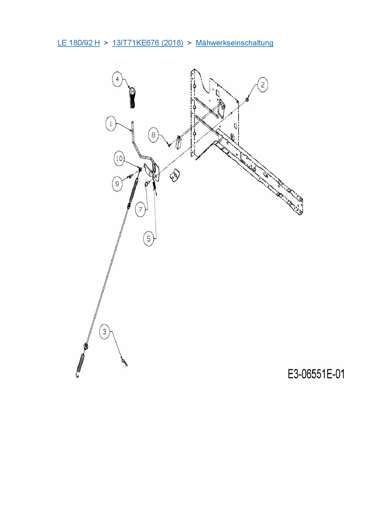 Ersatzteile für Rasentraktor MTD LE 180/92 H aus der Zeichnung Mähwerkseinschaltung: