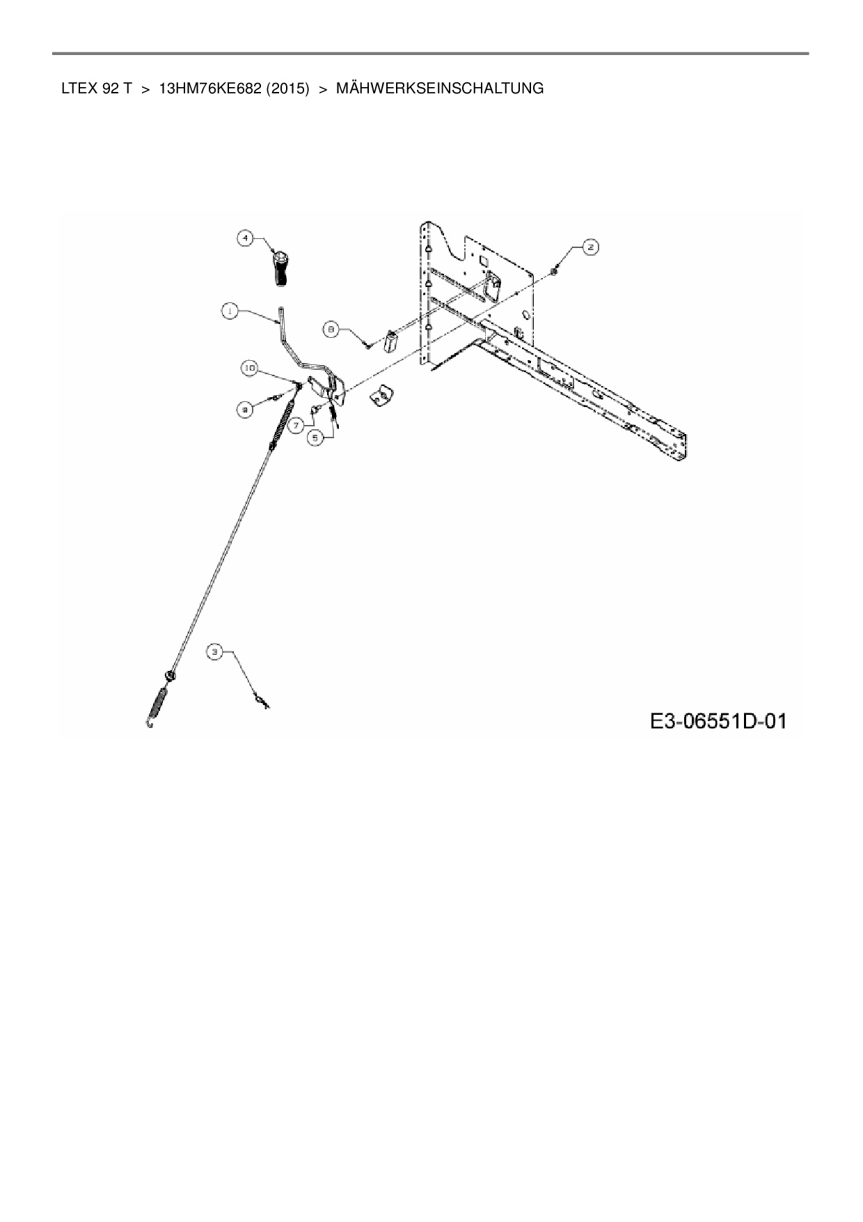 Ersatzteile für Rasentraktor MTD LTEX 92 T aus der Zeichnung Mähwerkseinschaltung: