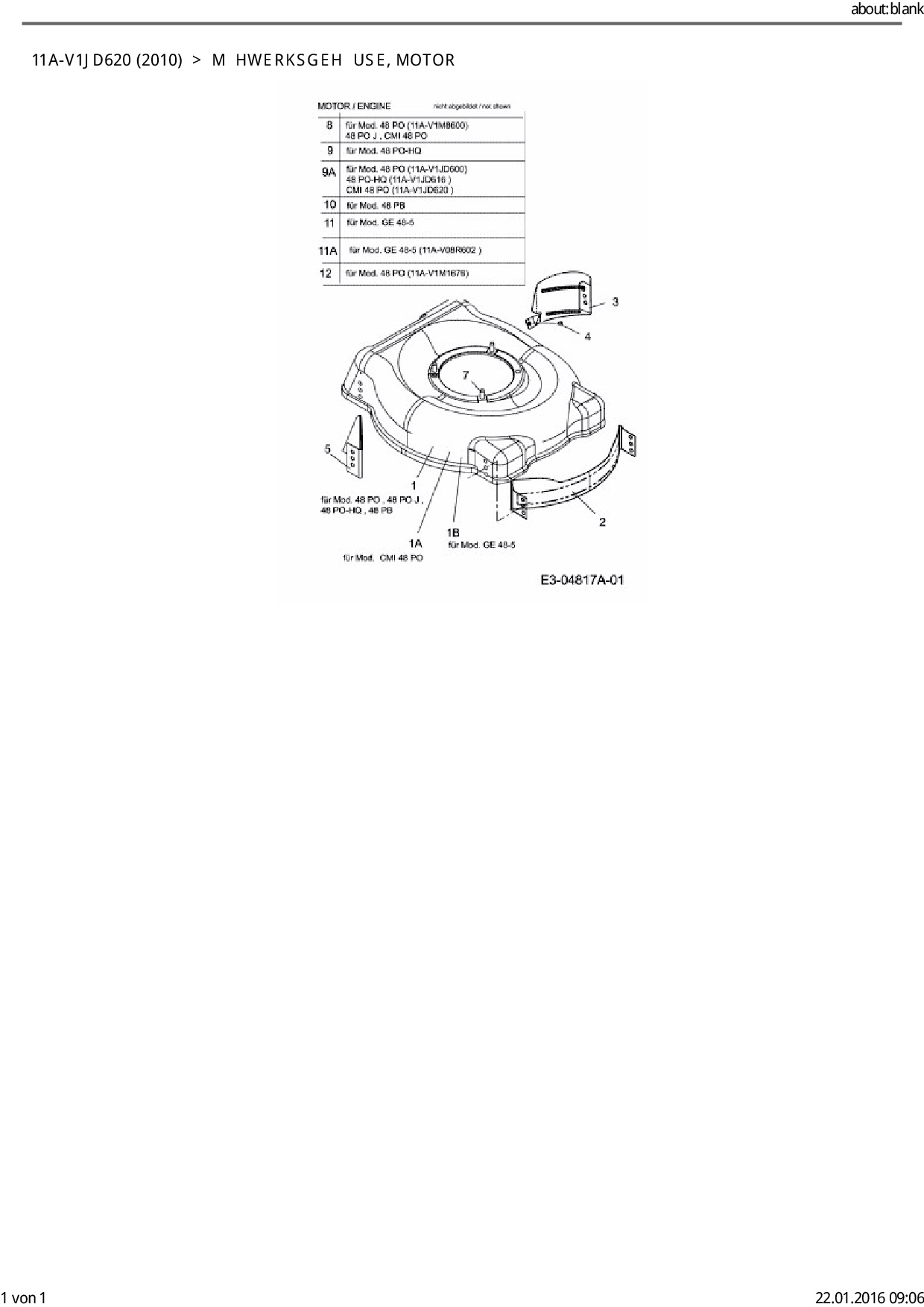 Download Ersatzteil-Zeichnung CMI 48 PO Zeichnung Mähwerksgehäuse, Motor (PDF-Format)