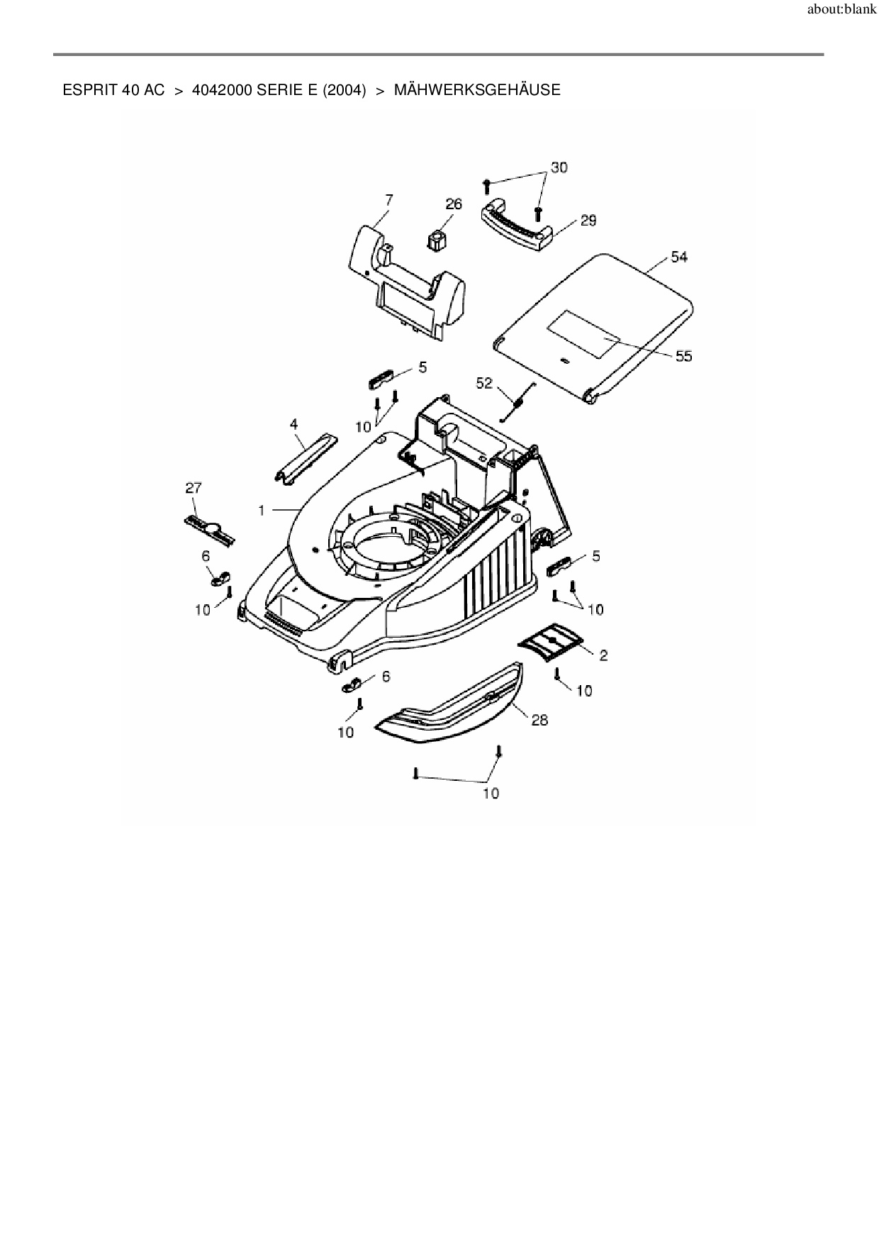 Ersatzteile für Akkumäher Wolf-Garten Esprit 40 AC aus der Zeichnung Mähwerksgehäuse: