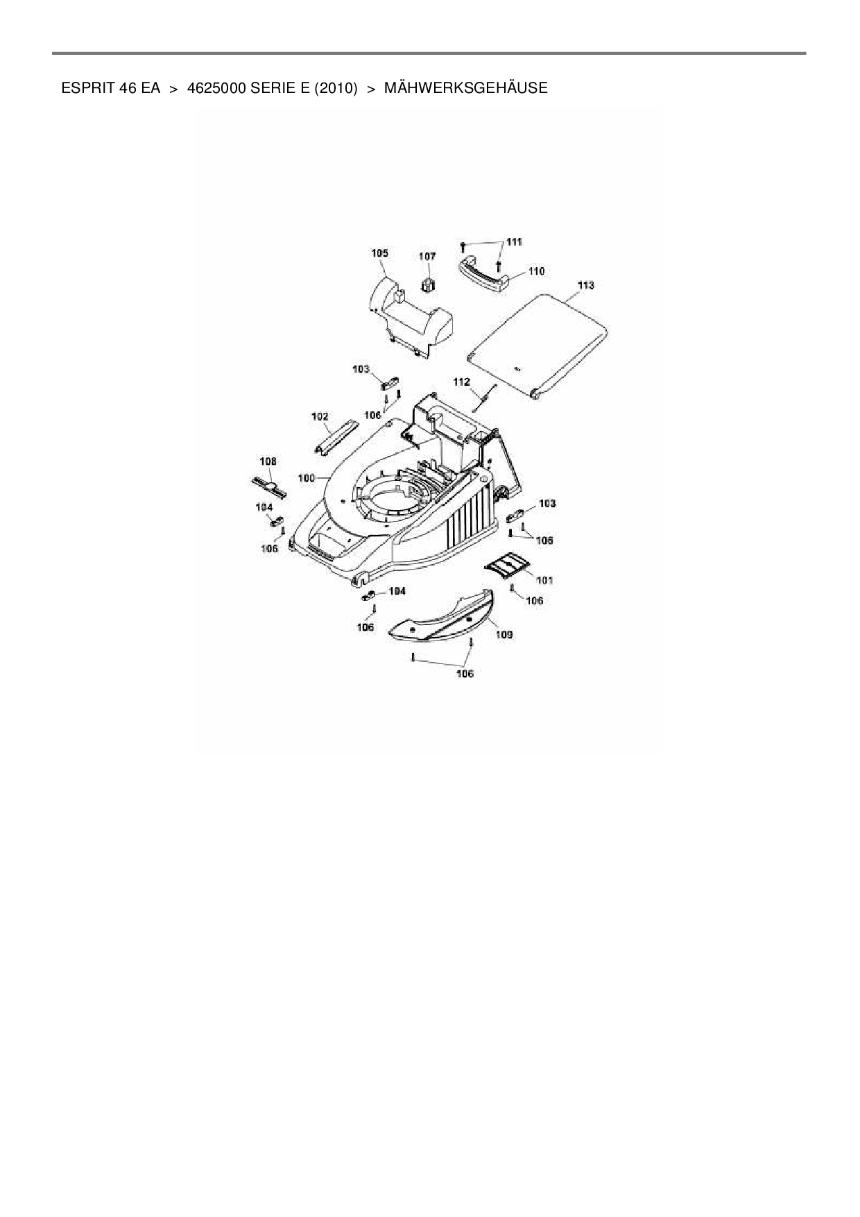 Ersatzteile für Elektromäher mit Antrieb Wolf-Garten Esprit 46 EA aus der Zeichnung Mähwerksgehäuse:
