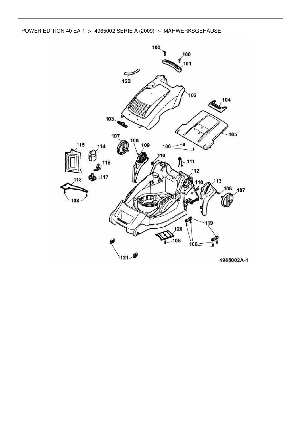 Ersatzteile für Elektromäher mit Antrieb Wolf-Garten Power Edition 40 EA-1 aus der Zeichnung Mähwerksgehäuse: