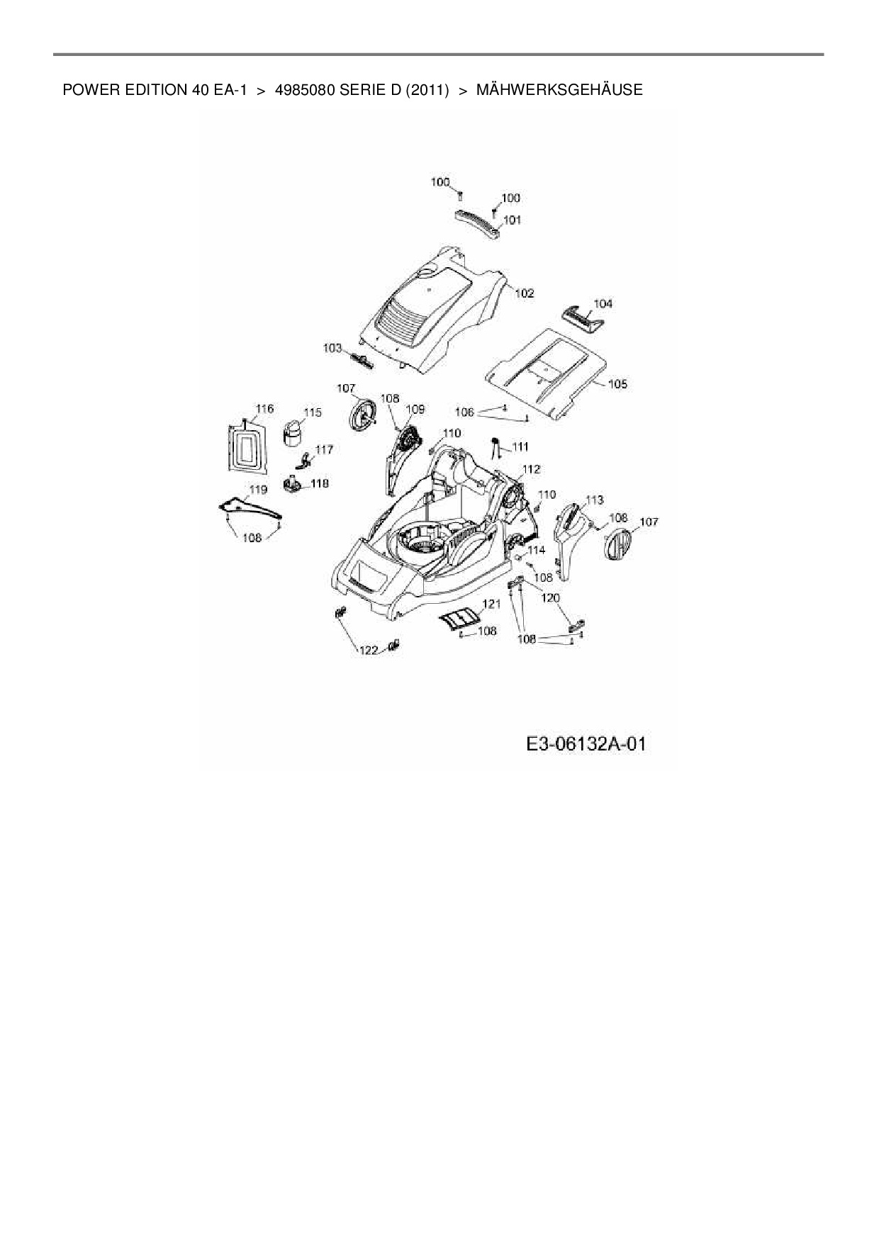 Zeichnung für Wolf-Garten Elektromäher mit Antrieb Power Edition 40 EA-1 mit der Geräte-Artikelnr. 4985080 Serie D ab Baujahr 2011: