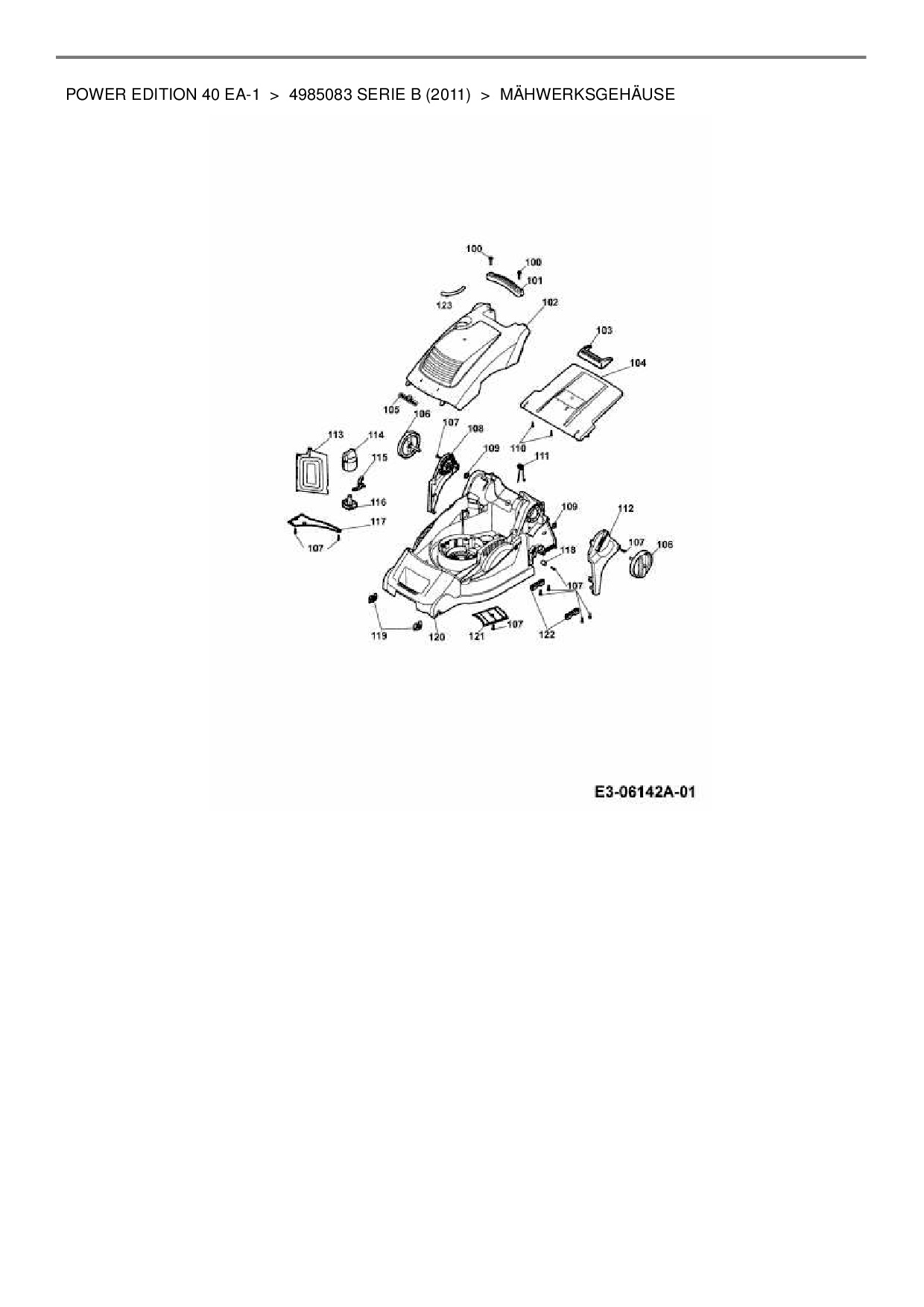 Zeichnung für Wolf-Garten Elektromäher mit Antrieb Power Edition 40 EA-1 mit der Geräte-Artikelnr. 4985083 Serie B ab Baujahr 2011: