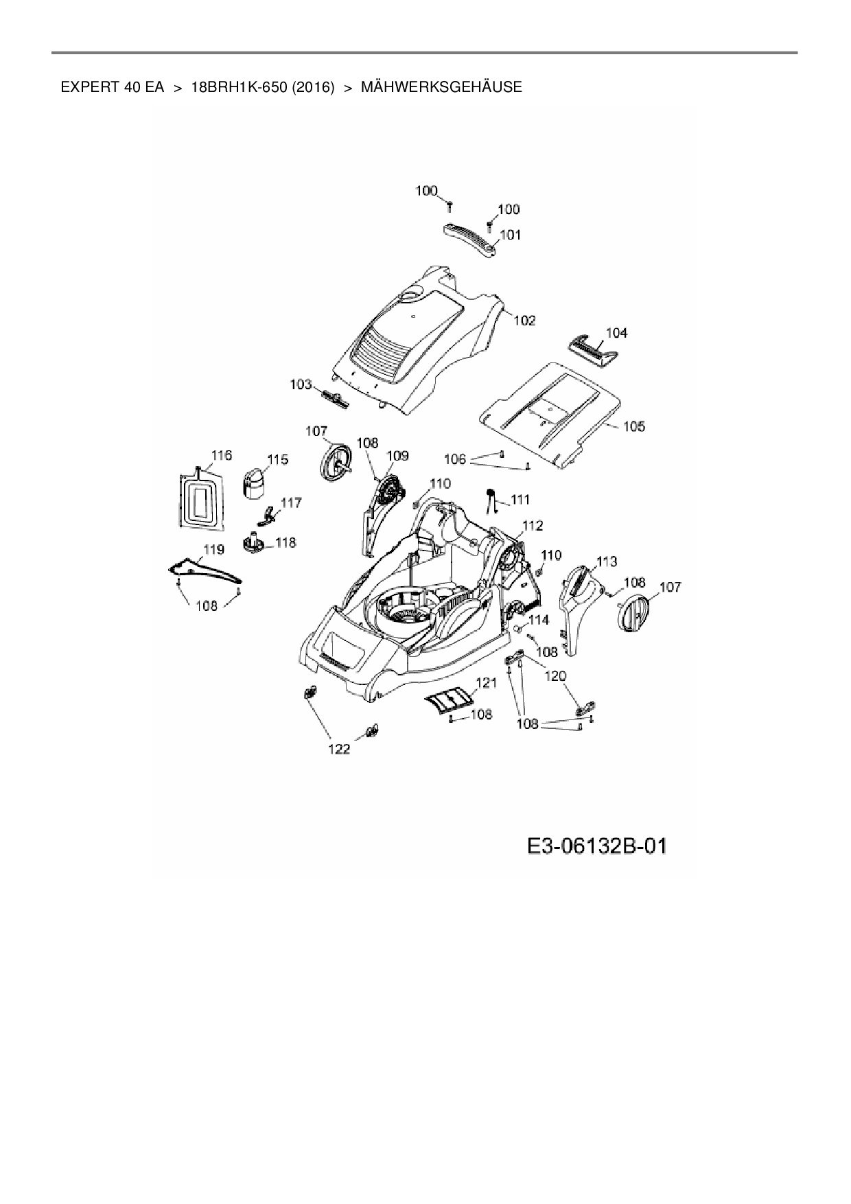 Zeichnung für Wolf-Garten Expert Elektromäher mit Antrieb Expert 40 EA mit der Geräte-Artikelnr. 18BRH1K-650 ab Baujahr 2016: