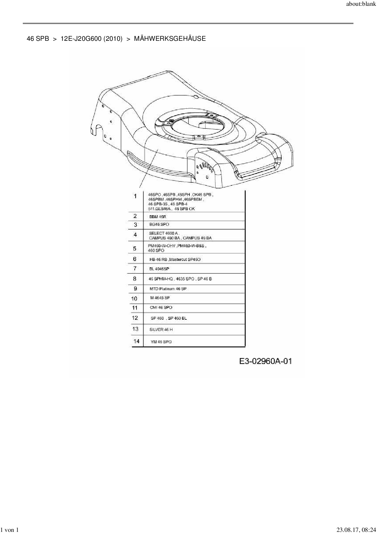Ersatzteile für Motormäher mit Antrieb MTD 46 SPB aus der Zeichnung Mähwerksgehäuse:
