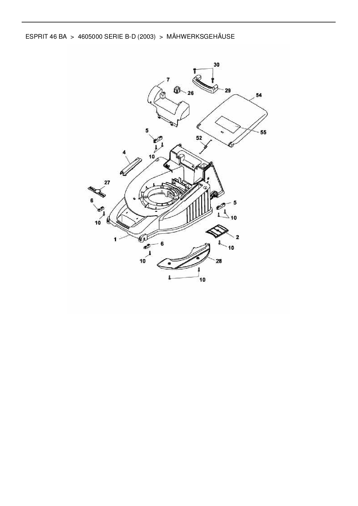 Ersatzteile für Motormäher mit Antrieb Wolf-Garten Esprit 46 BA aus der Zeichnung Mähwerksgehäuse: