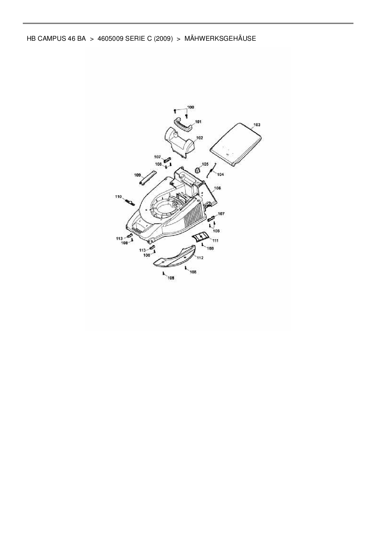 Ersatzteile für Motormäher mit Antrieb Wolf-Garten HB Campus 46 BA aus der Zeichnung Mähwerksgehäuse: