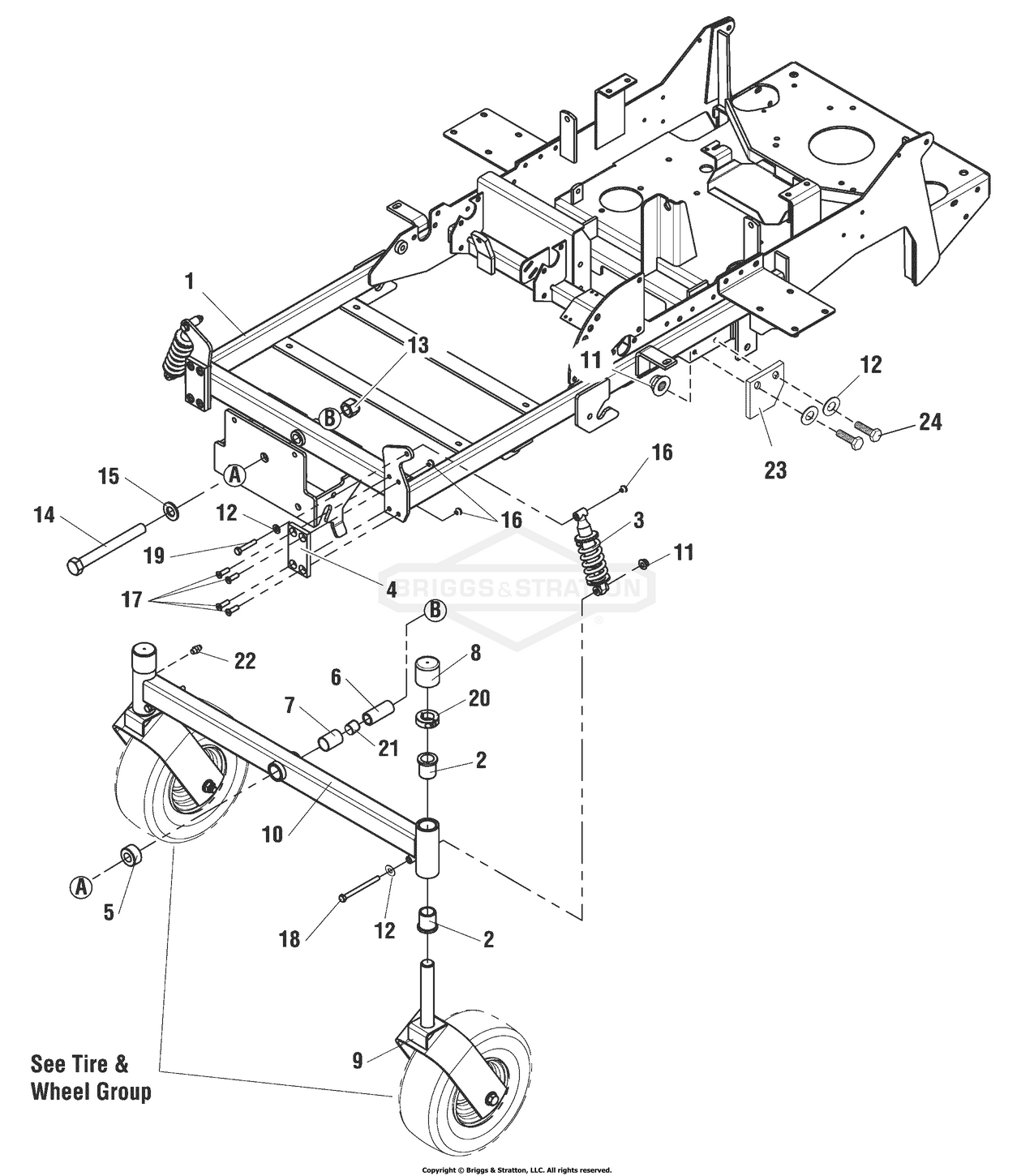 Zeichnung Snapper 5900735 - EZT2050, 50" 20HP ZTR W/ SUS 375Z Series (CE/Export) - Zeichnungsgruppe Main Frame & Front Suspension Group: