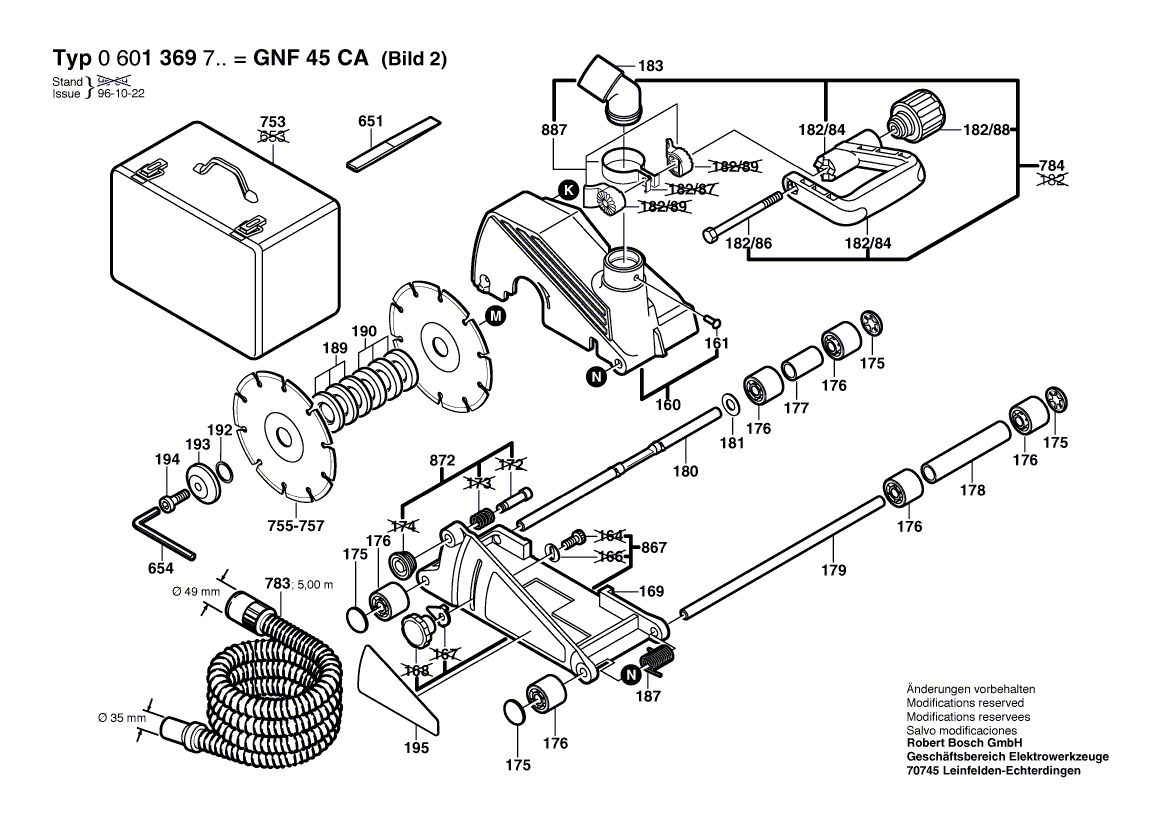 Zeichnungen von Bosch Mauernutfräse GNF 45 CA mit der Geräte-Artikelnummer 0 601 369 703
