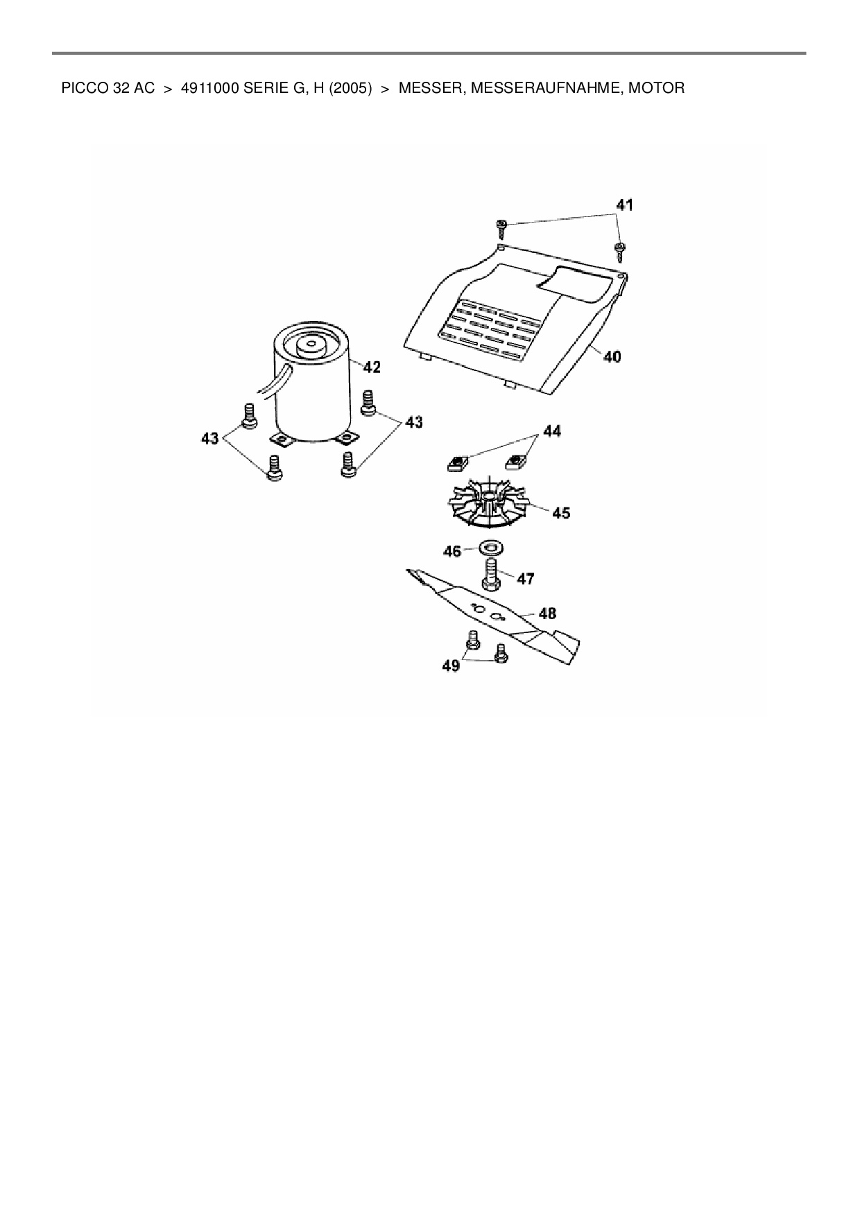 Ersatzteile für Akkumäher Wolf-Garten Picco 32 AC aus der Zeichnung Messer, Messeraufnahme, Motor: