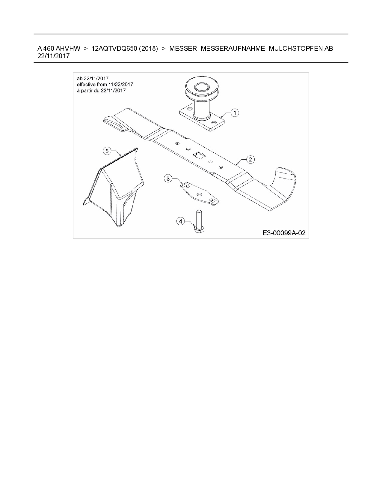 Ersatzteile für Motormäher mit Antrieb Wolf-Garten A 460 AHVHW aus der Zeichnung Messer, Messeraufnahme, Mulchstopfen ab 22/11/2017:
