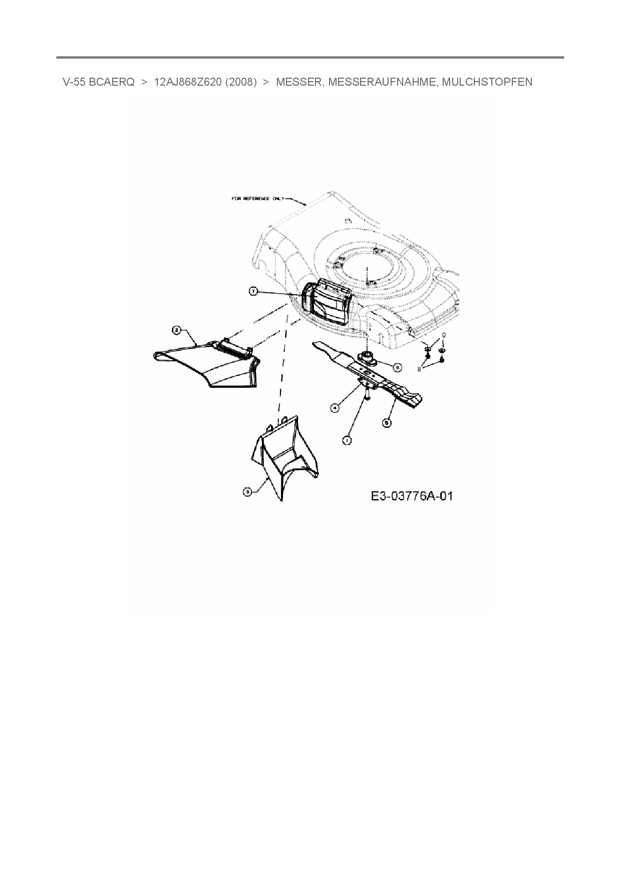 Ersatzteile für Motormäher mit Antrieb Variolux V-55 BCAERQ aus der Zeichnung Messer, Messeraufnahme, Mulchstopfen: