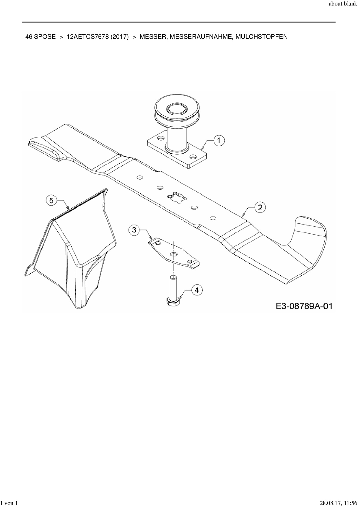Download Ersatzteil-Zeichnung MTD 46 SPOSE Zeichnung Messer, Messeraufnahme, Mulchstopfen (PDF-Format)