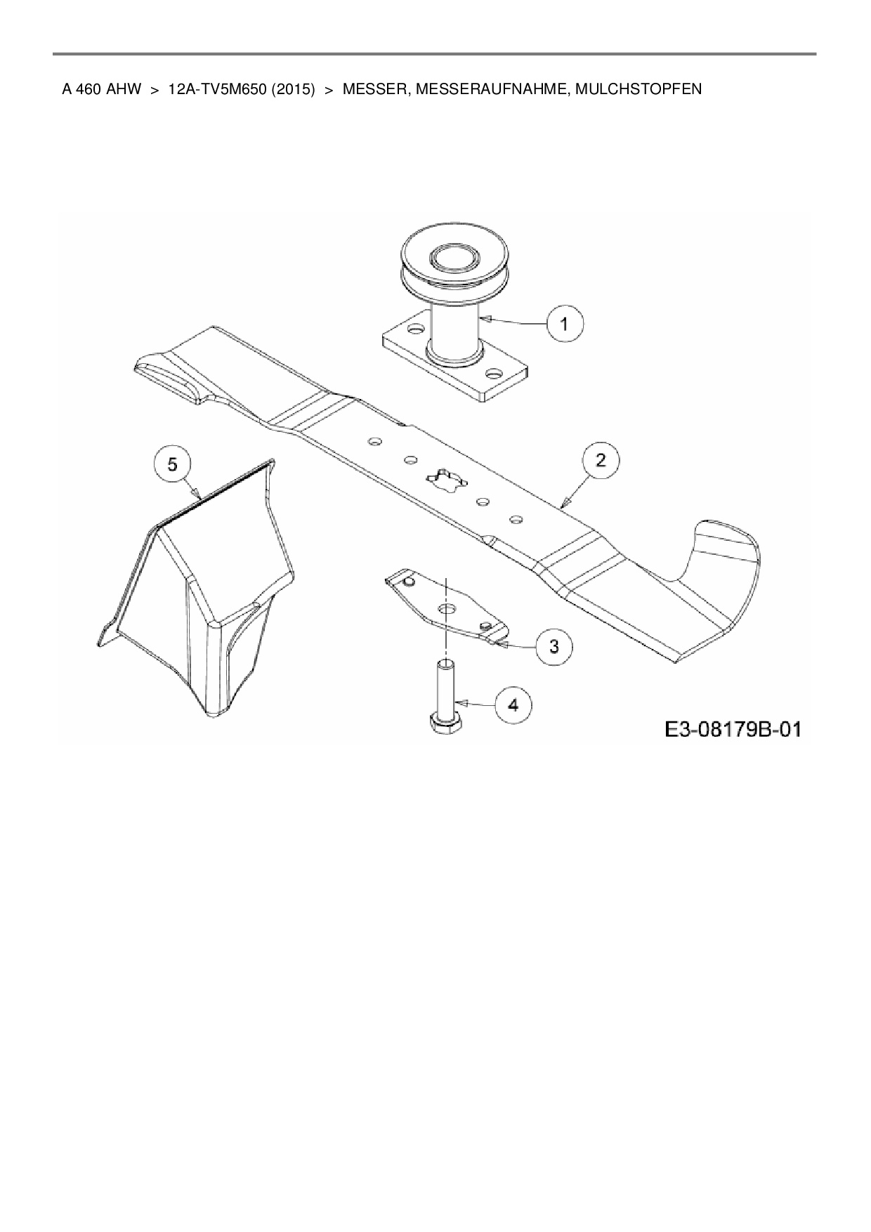 Ersatzteile für Motormäher mit Antrieb Wolf-Garten A 460 AHW aus der Zeichnung Messer, Messeraufnahme, Mulchstopfen: