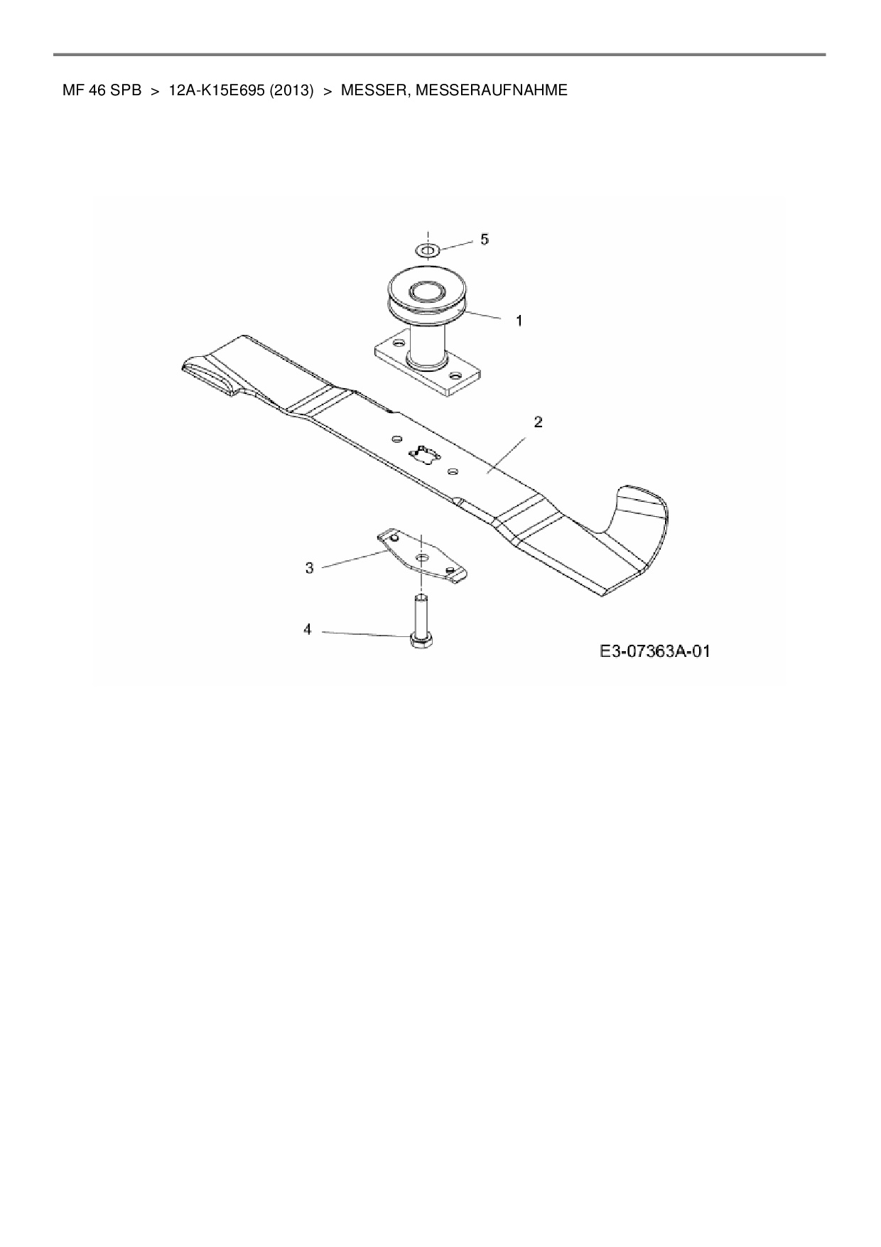 Ersatzteile für Motormäher mit Antrieb Massey Ferguson MF 46 SPB aus der Zeichnung Messer, Messeraufnahme: