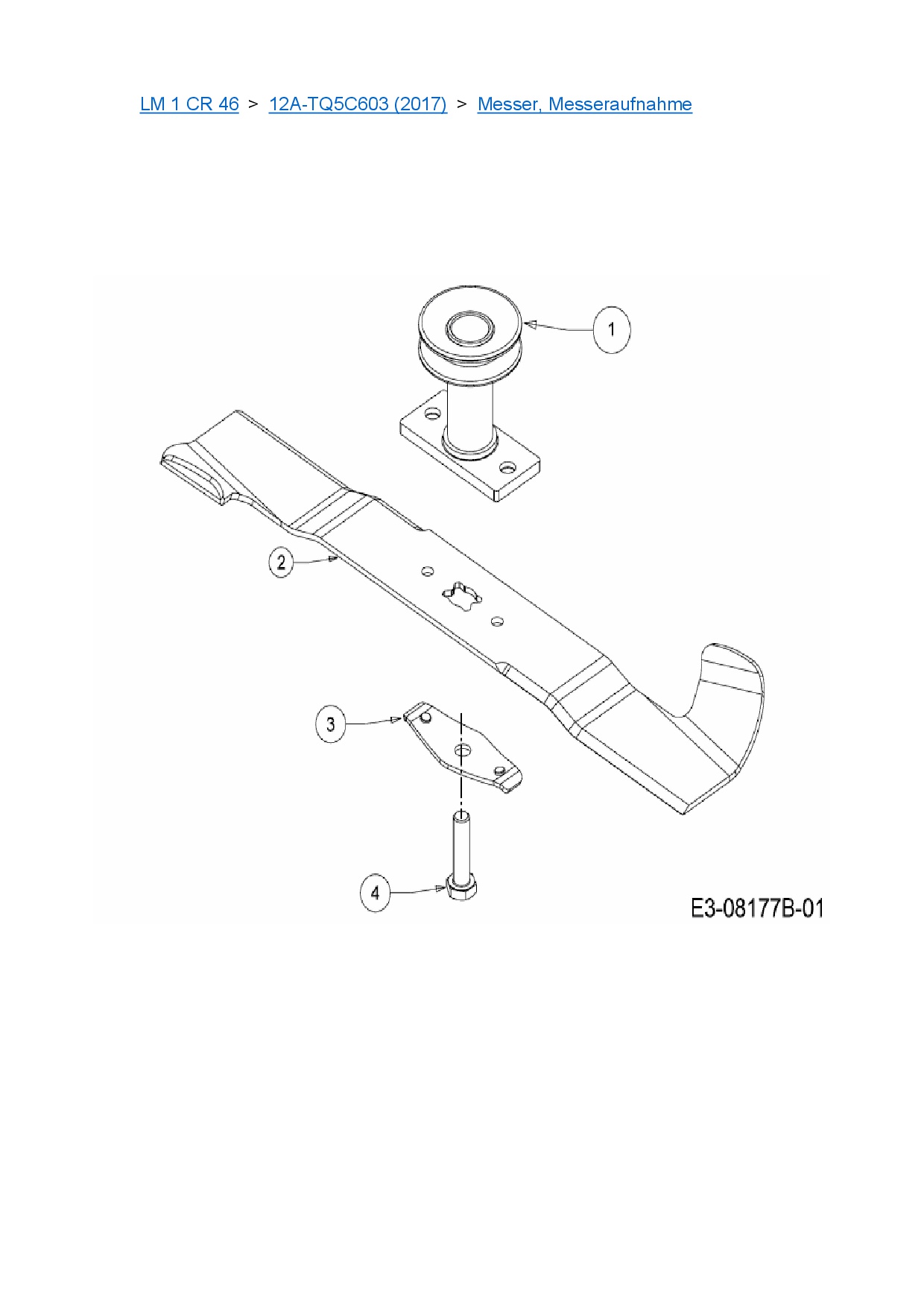 Ersatzteile für Motormäher mit Antrieb Cub Cadet LM 1 CR 46 aus der Zeichnung Messer, Messeraufnahme:
