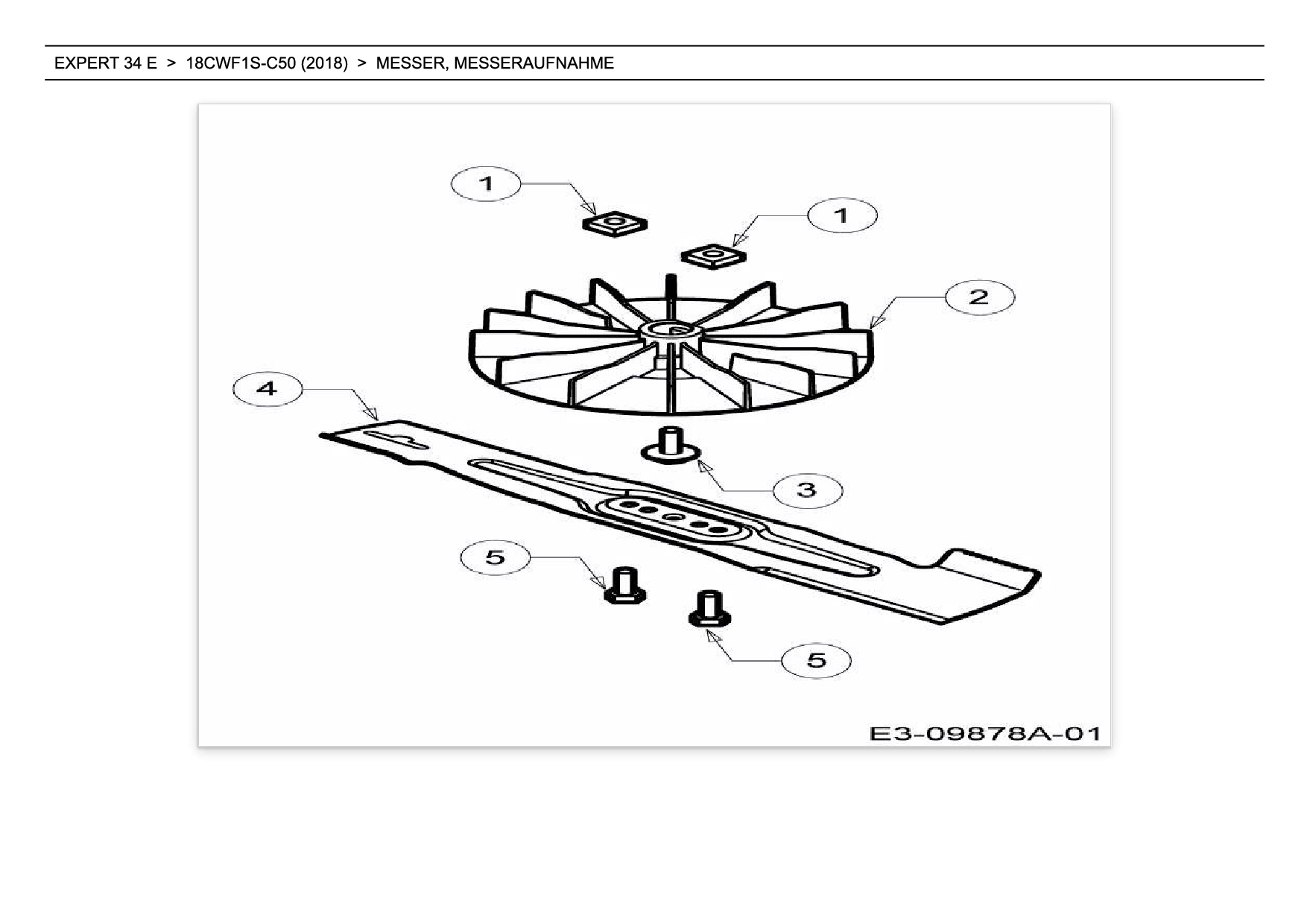 Ersatzteile für Elektromäher Wolf-Garten Expert EXPERT 34 E aus der Zeichnung Messer, Messeraufnahme: