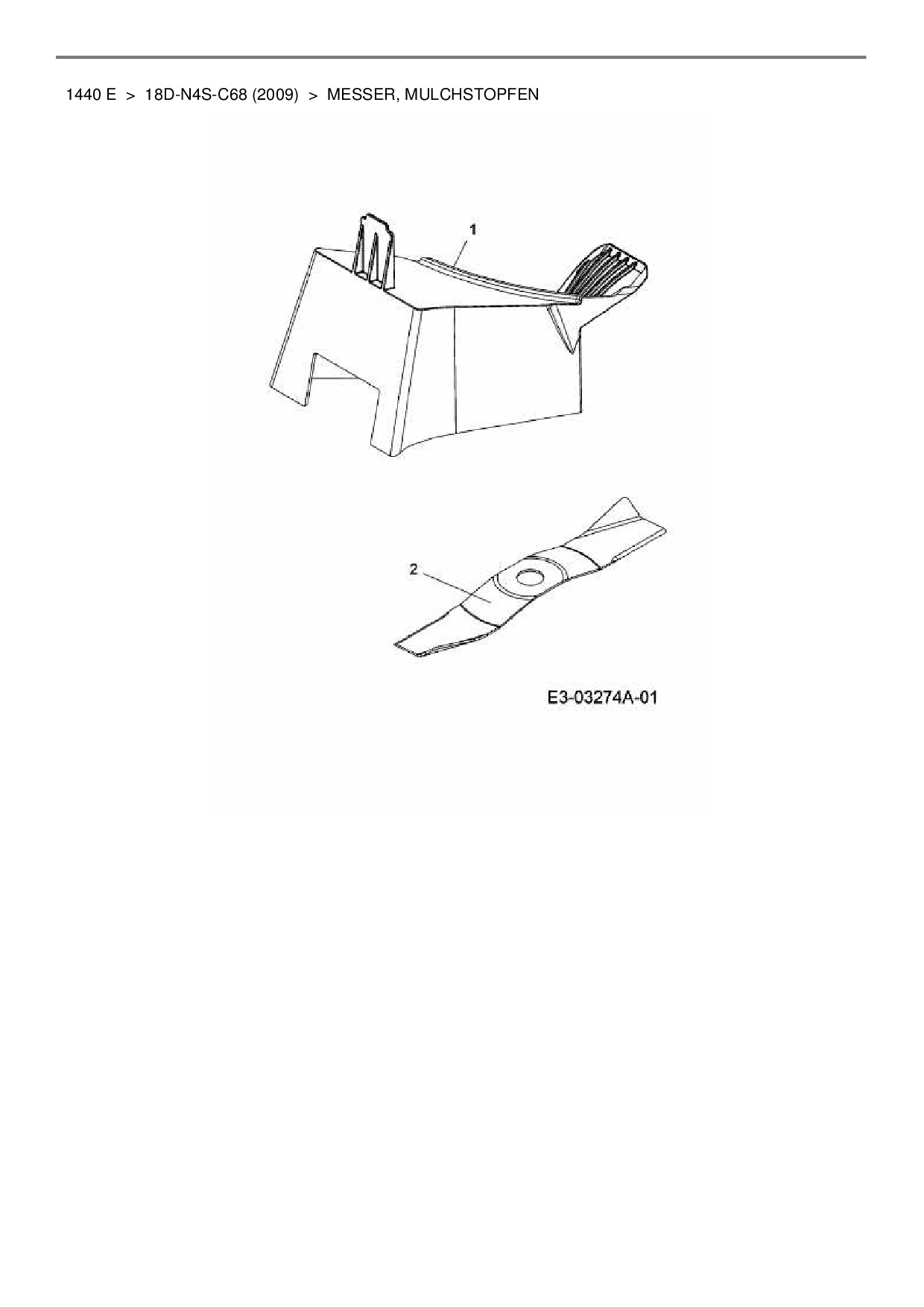 Ersatzteile für Elektromäher Mac Allister 1440 E aus der Zeichnung Messer, Mulchstopfen: